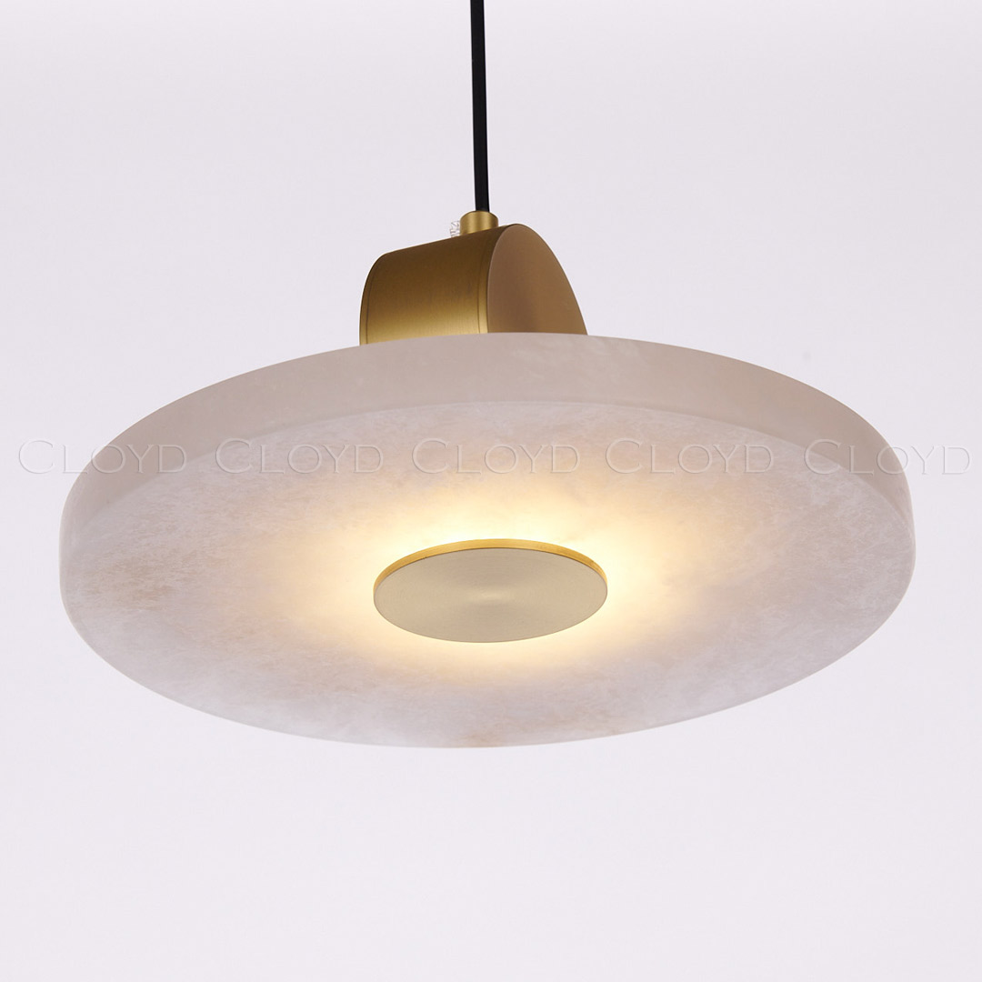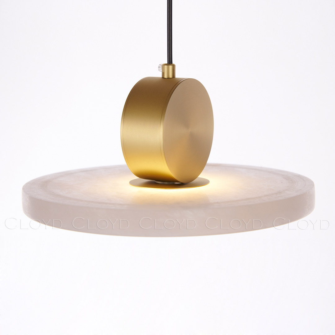 Подвесной светильник Cloyd PILAT (Клойд Пилат) P1 / арт.11199, ø: 25 см. высота: 12 см, источник света: LED 5 Вт, цвет металла - латунь. Особенности: алебастр или Облачный Камень - минерал с повышенной светопроницаемостью.Гарантия: 1 год.