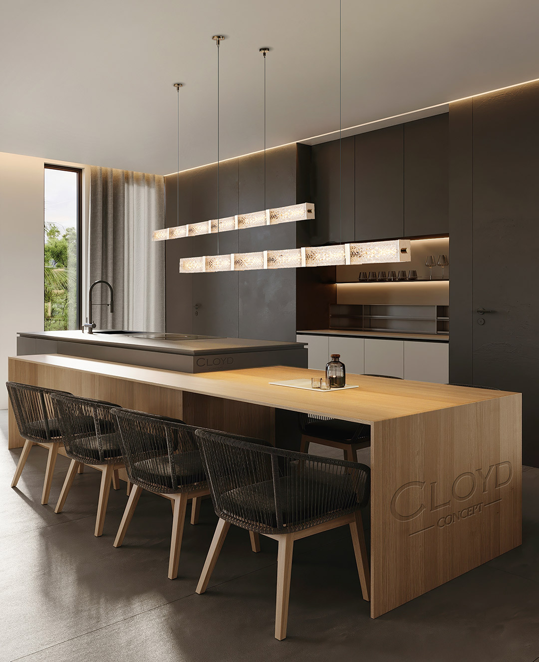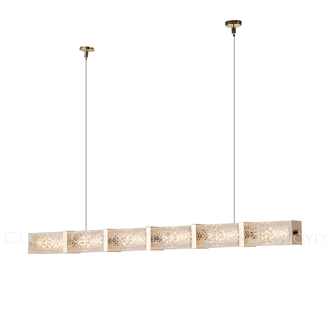 Подвесной светильник Cloyd PROMENADE (Клойд Променад) P1 / арт.11527, ширина: 110 см. высота: 8 см глубина: 8 см, источник света: LED 25 Вт, цвет металла - золото блестящее. Гарантия: 1 год.