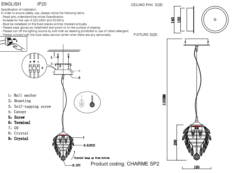 Светильник подвесной Crystal Lux CHARME SP2 CHROME/TRANSPARENT