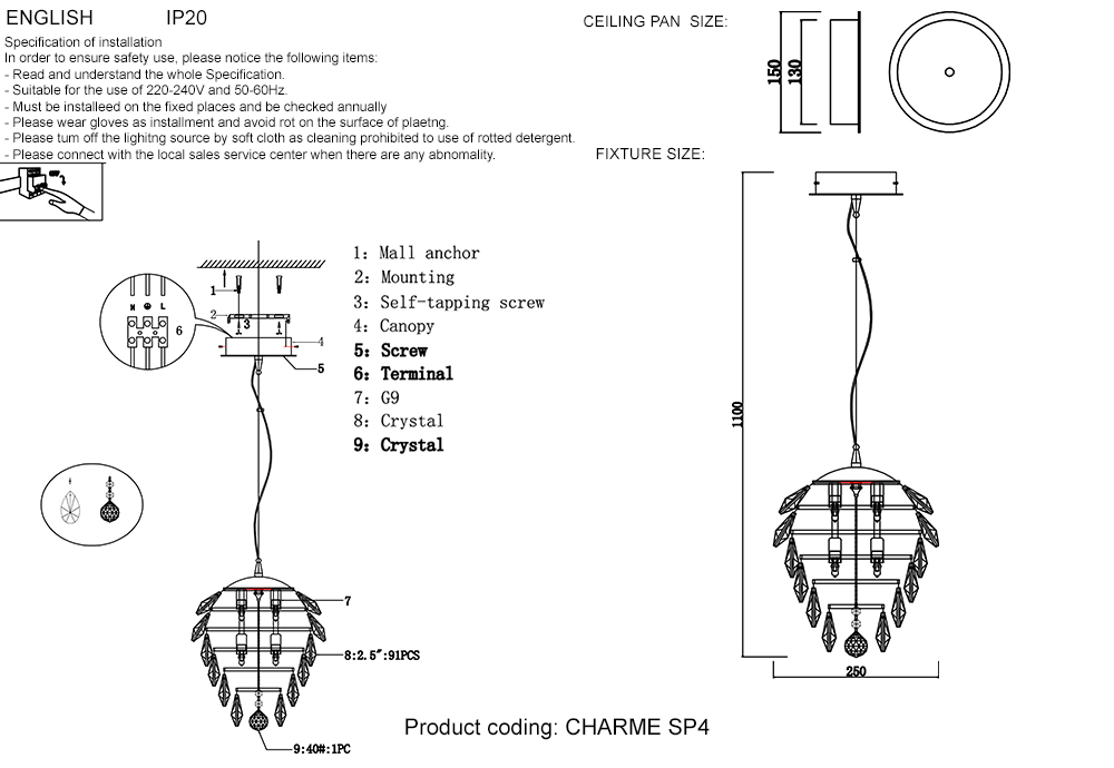 Светильник подвесной Crystal Lux CHARME SP4 CHROME/TRANSPARENT