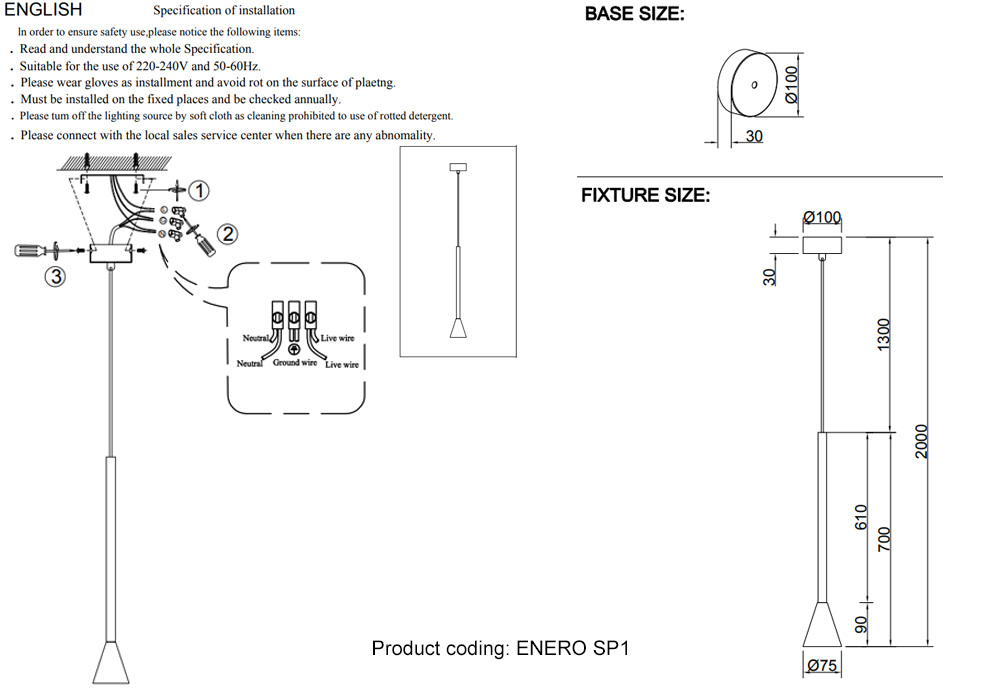 Светильник подвесной Crystal Lux ENERO SP1 BRASS