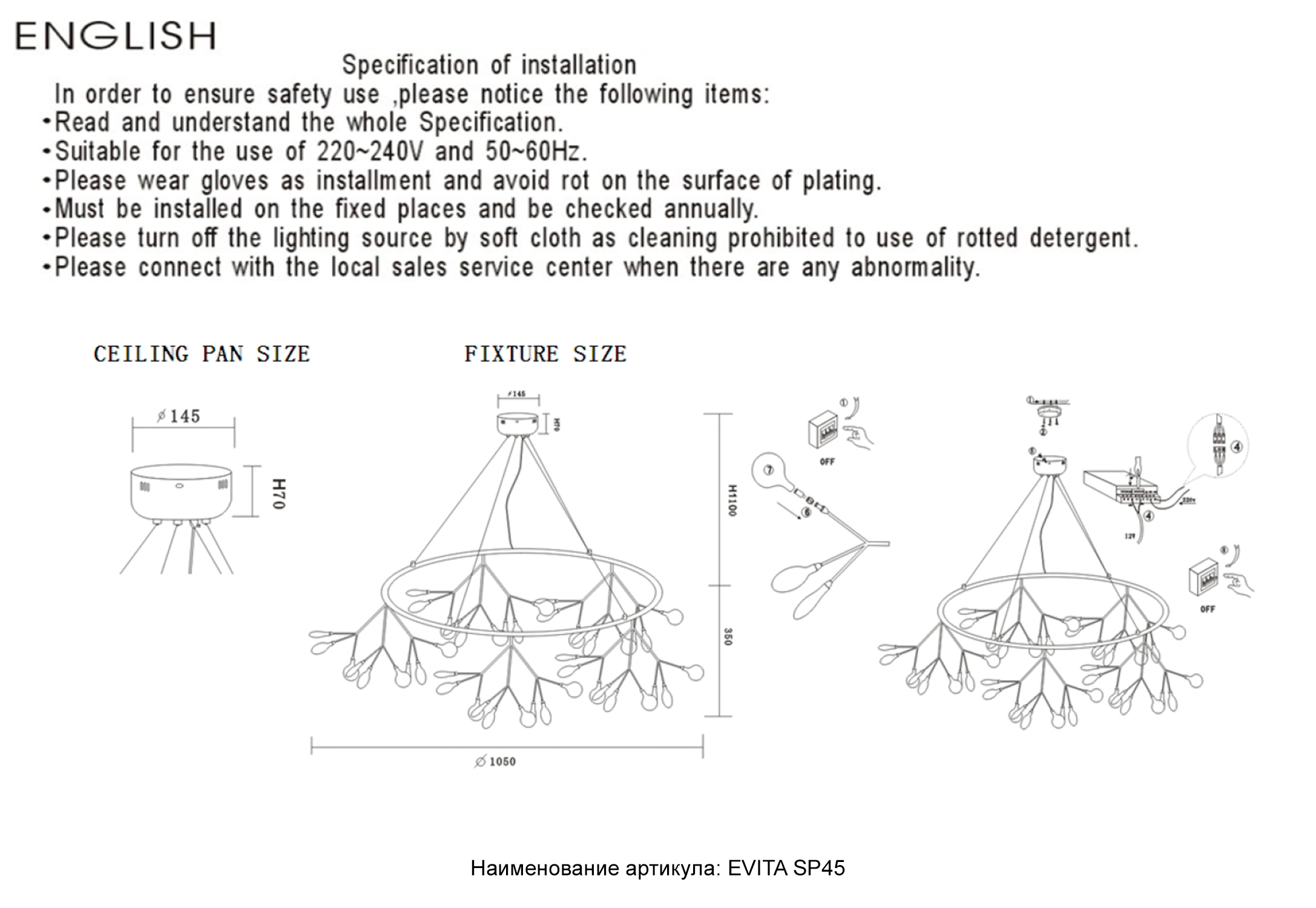 Высота с цепью/тросом, мм