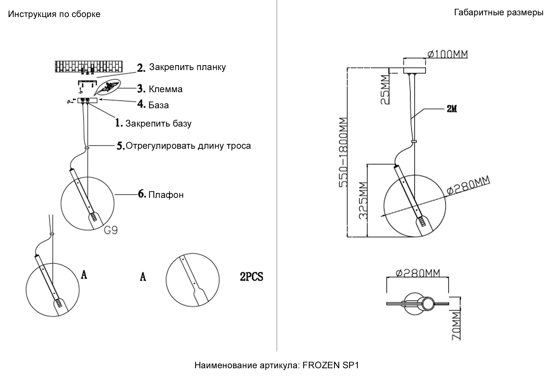Светильник подвесной Crystal Lux FROZEN SP1 BLACK