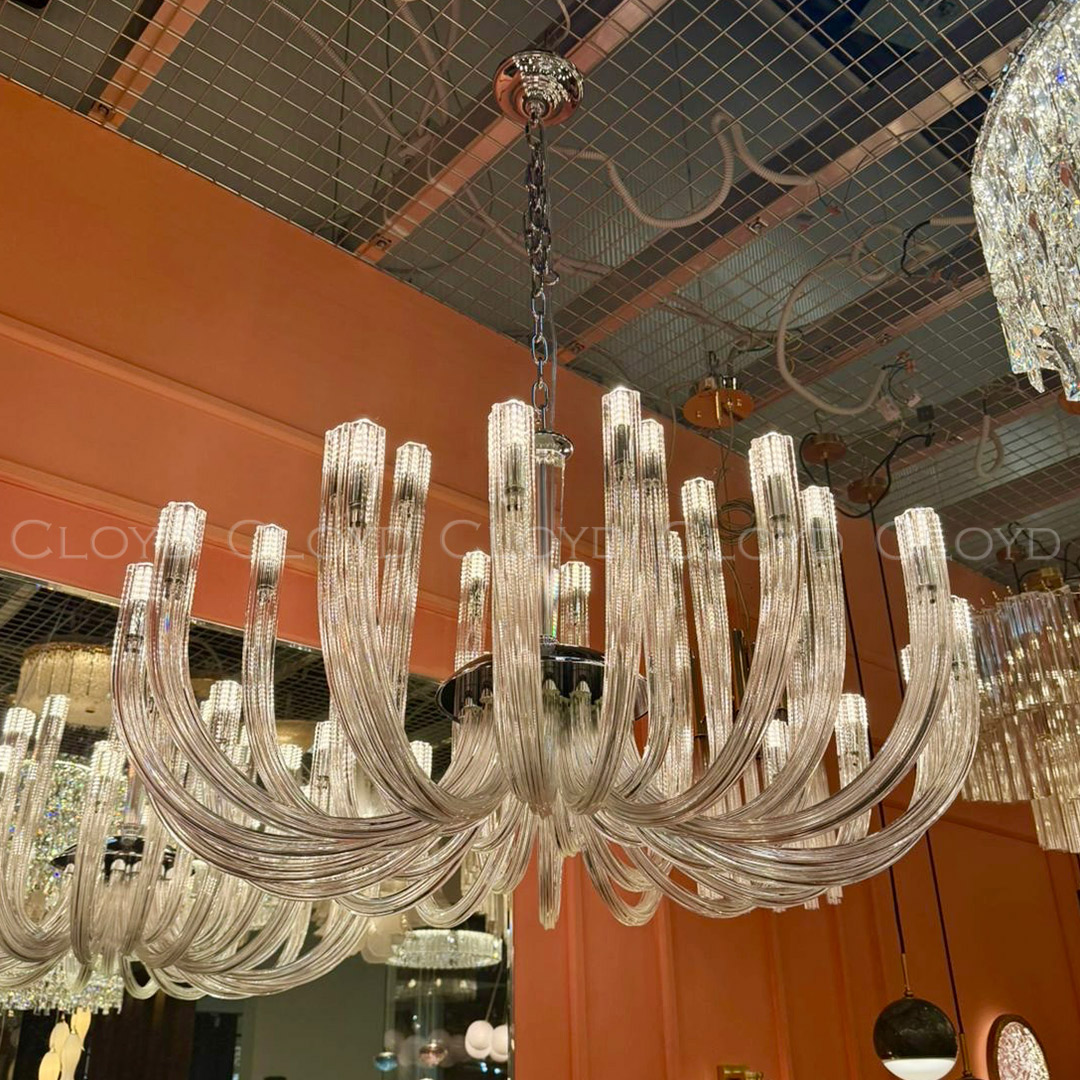 Люстра подвесная Cloyd AEDA (Клойд Аэда) C32 / арт.11638, ø: 90 см. высота: 50 см (подвес в комплекте - до 150 см), источник света: G9 х 32 шт, цвет металла - хром блестящий. Гарантия: 1 год.