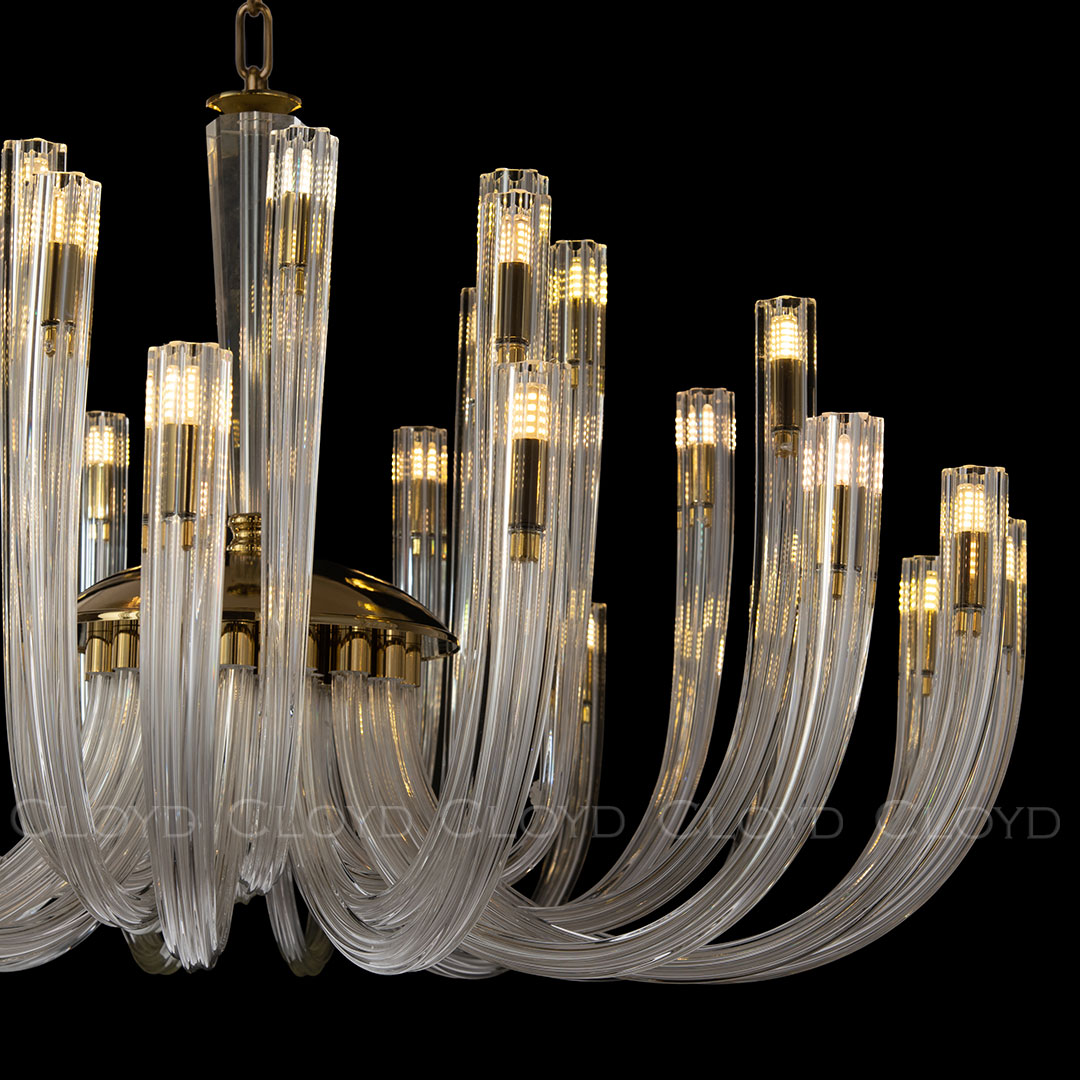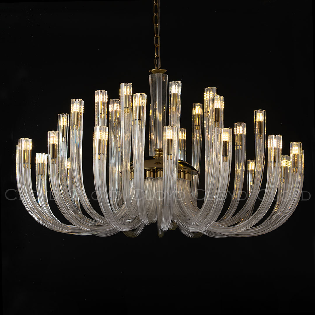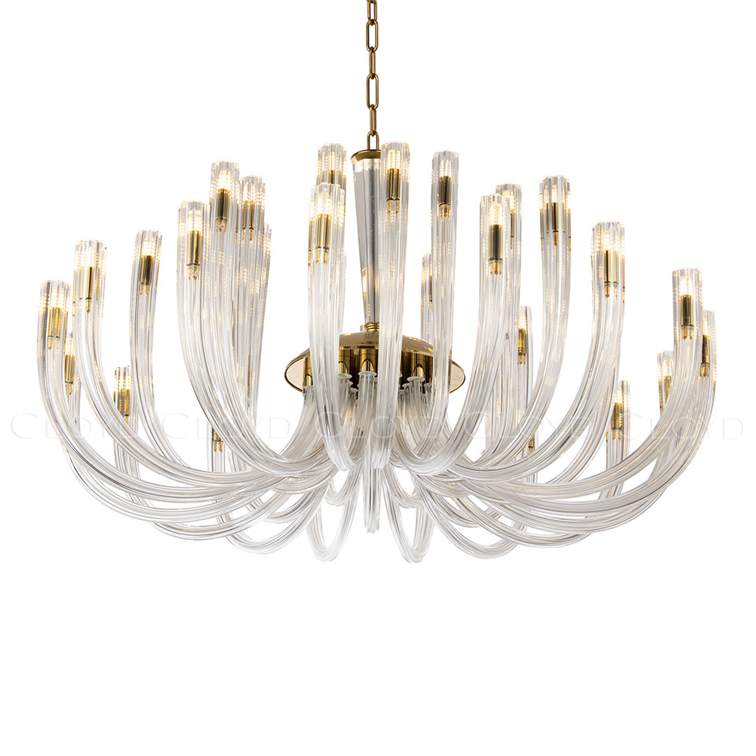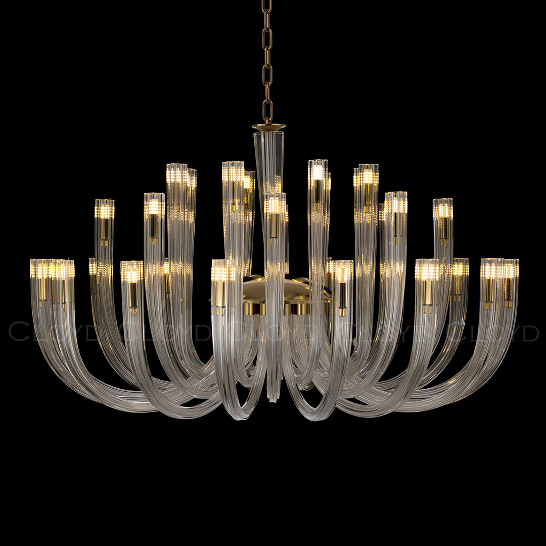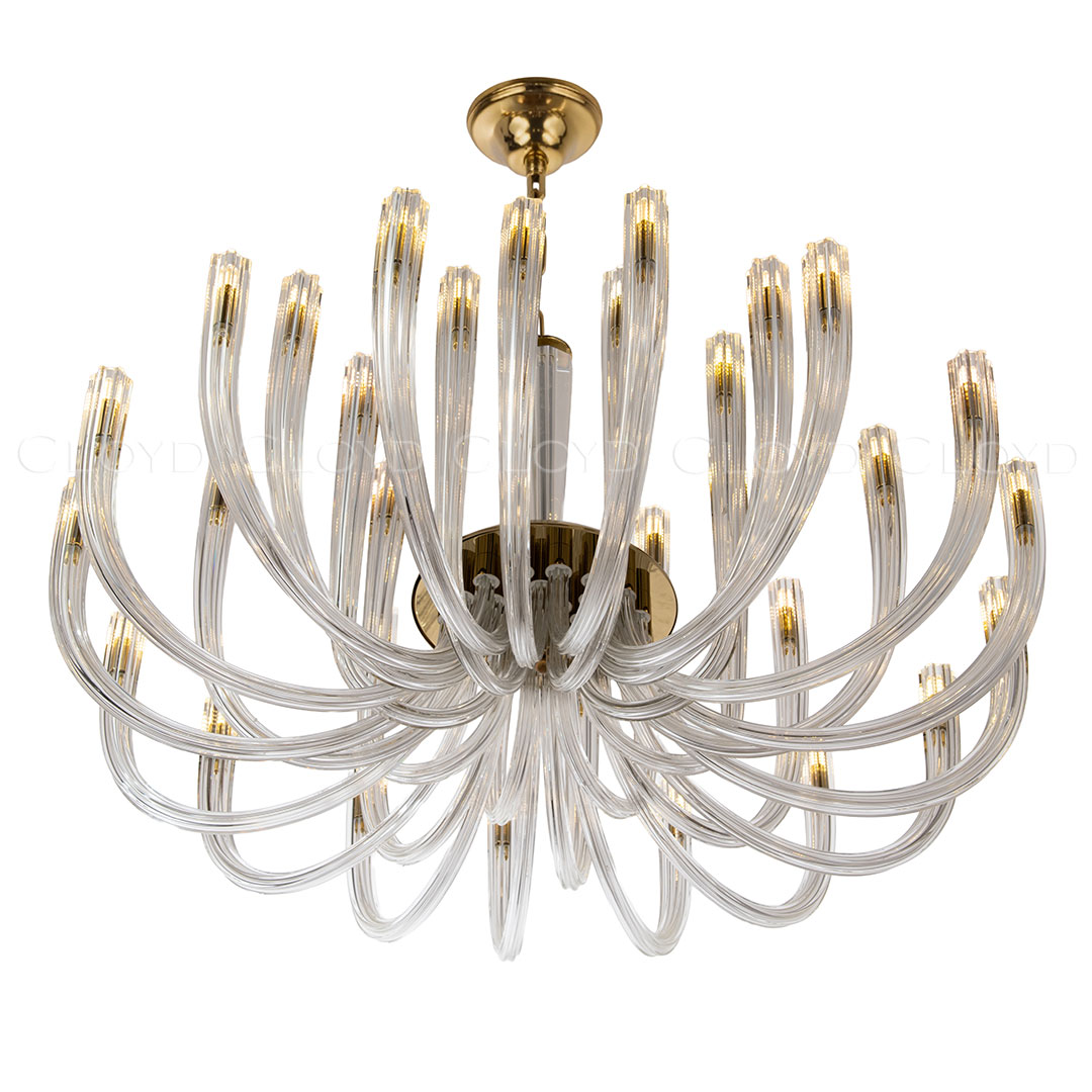 Люстра подвесная Cloyd AEDA (Клойд Аэда) C32 / арт.11663, ø: 90 см. высота: 50 см (подвес в комплекте - до 150 см), источник света: G9 х 32 шт, цвет металла - золото блестящее. Гарантия: 1 год.