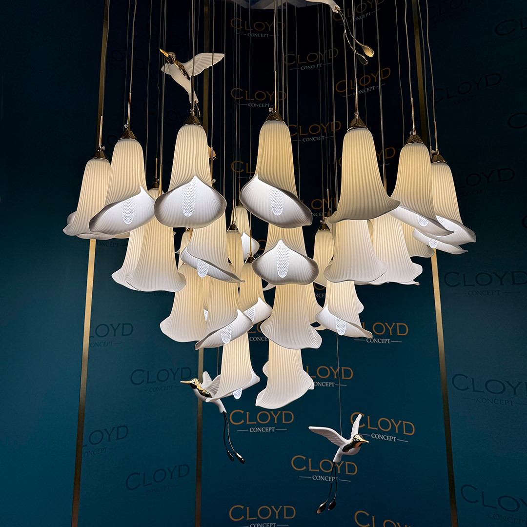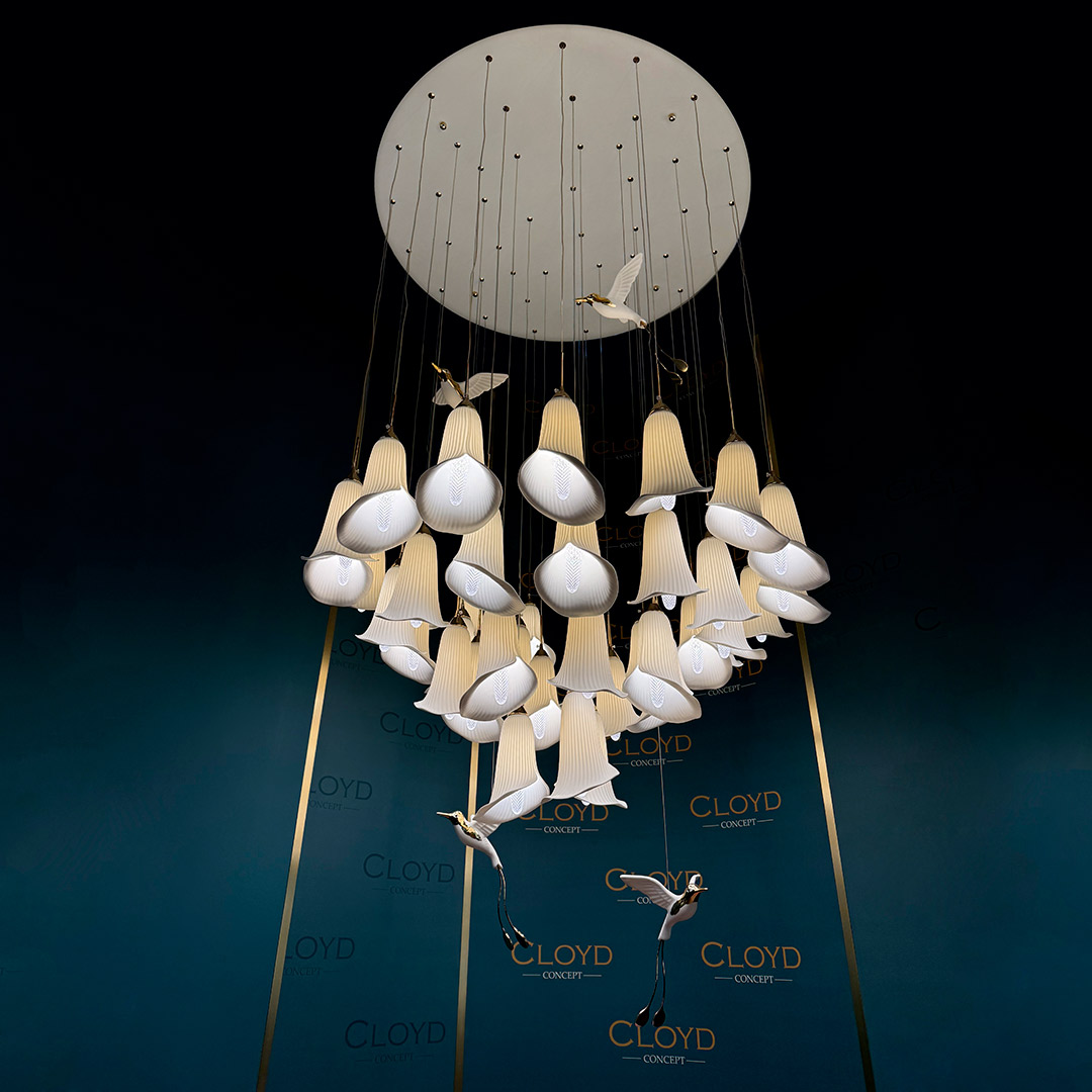 Люстра подвесная Cloyd OSANNA (Клойд Осанна) C41 / арт.11897, ø: 100 см. высота: 200 см, источник света: E14 х 41 шт, цвет металла - белый (окраска). Фурнитура - золото. Особенности: керамика высокого качества, птица выполнена из фарфора.Гарантия: 1 год.
