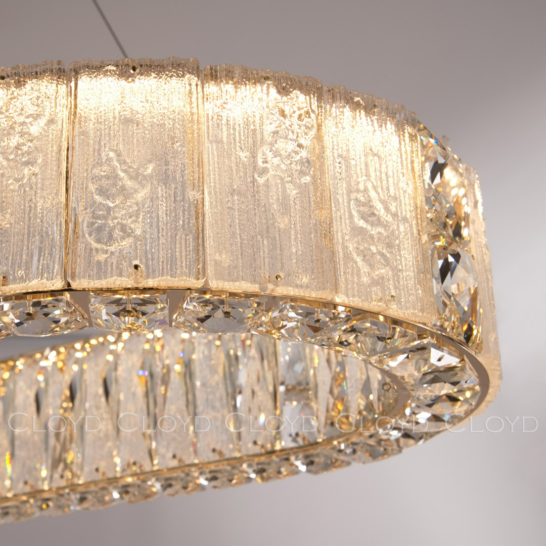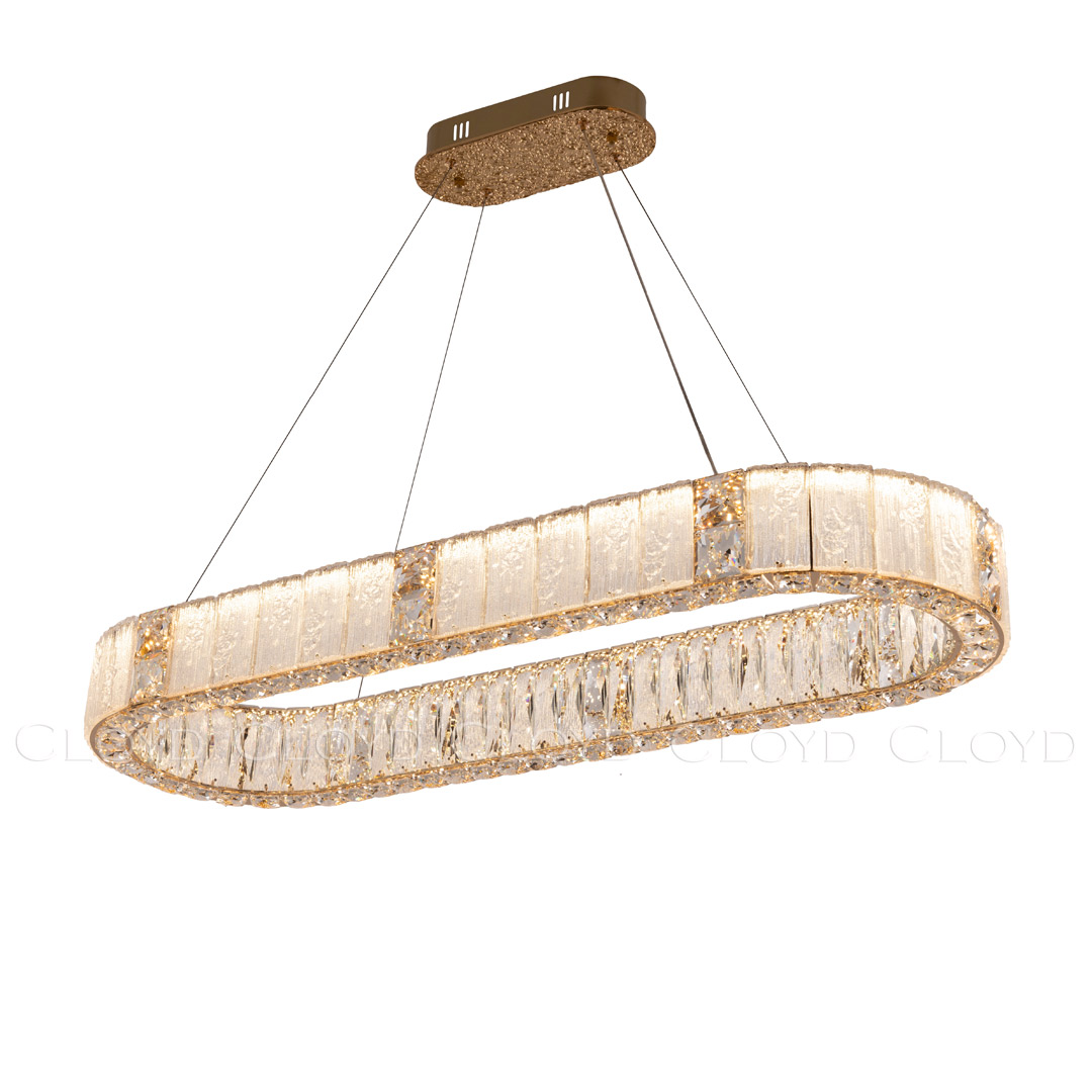 Люстра подвесная Cloyd RADIANTA (Клойд Радианта) C1 / арт.11233, ширина: 102 см. высота: 11 см глубина: 37 см, источник света: LED 100 Вт (3000 К, теплый свет), цвет металла - золото блестящее. Особенности: хрусталь К9.Гарантия: 1 год.