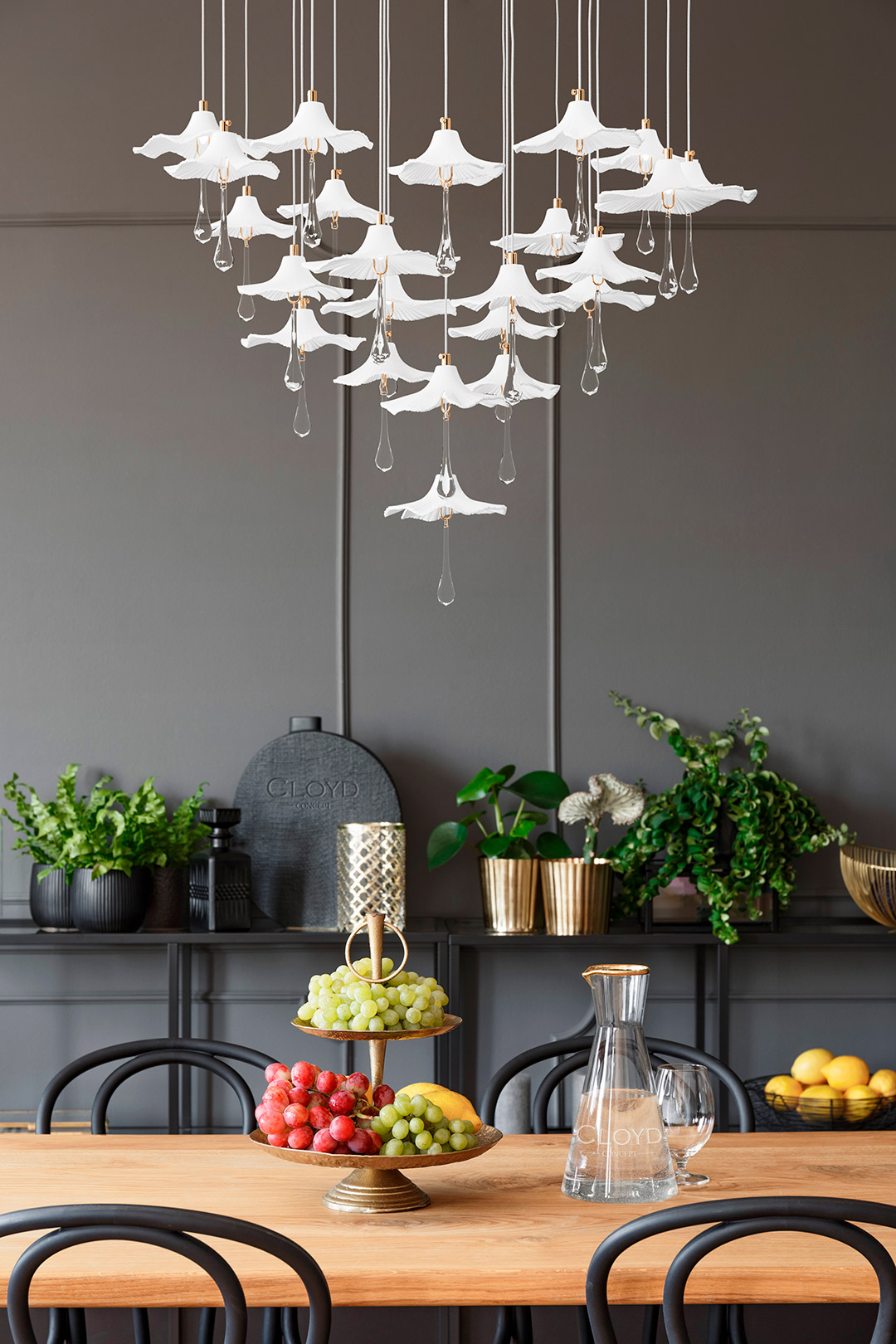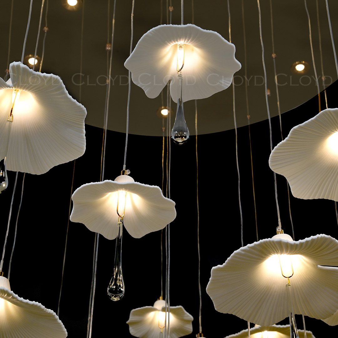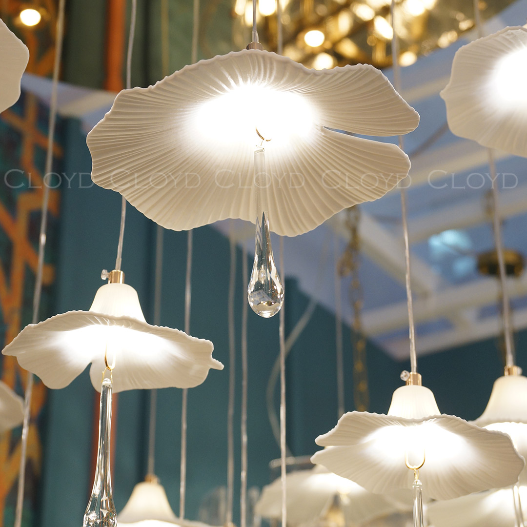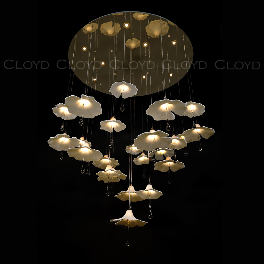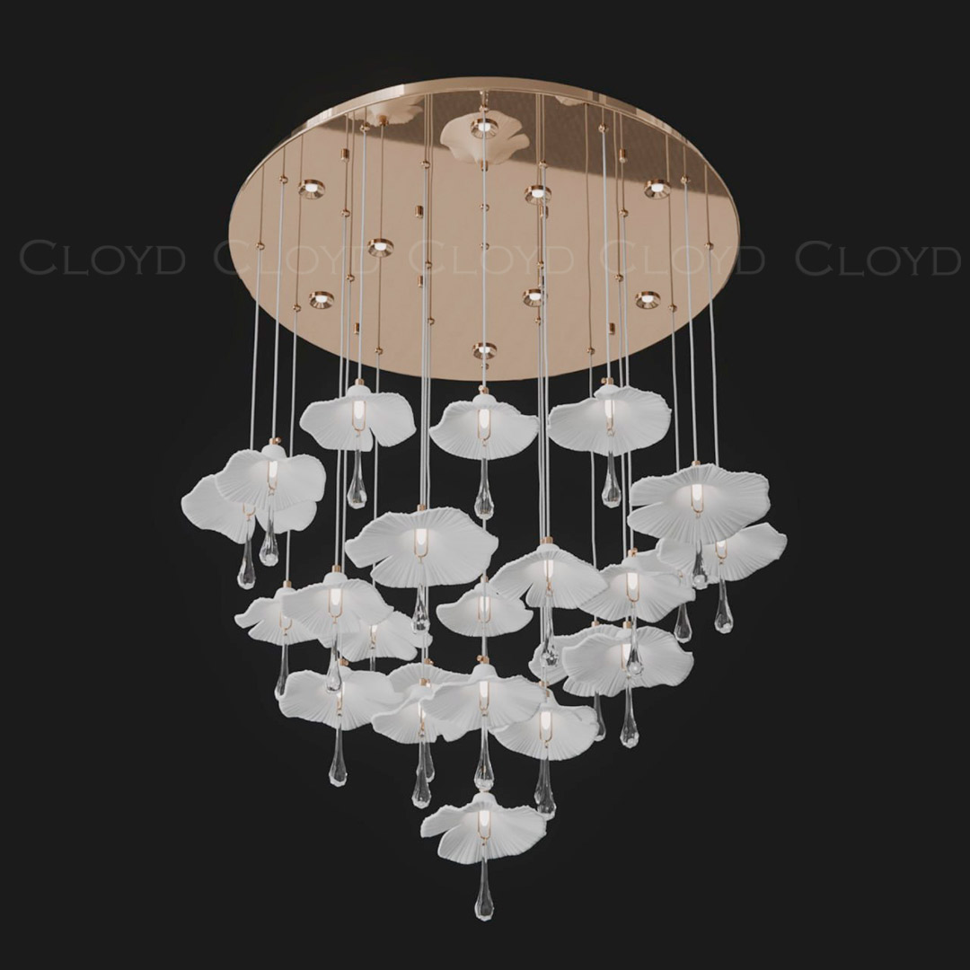 Люстра подвесная Cloyd SHANGRILA (Клойд Шангрила) C33 / арт.11334, ø: 100 см. высота: 120 см, источник света: GU10 х 9 шт + G4 x 24 шт, цвет металла - золото блестящее. Особенности: керамика высокого качества.Гарантия: 1 год.