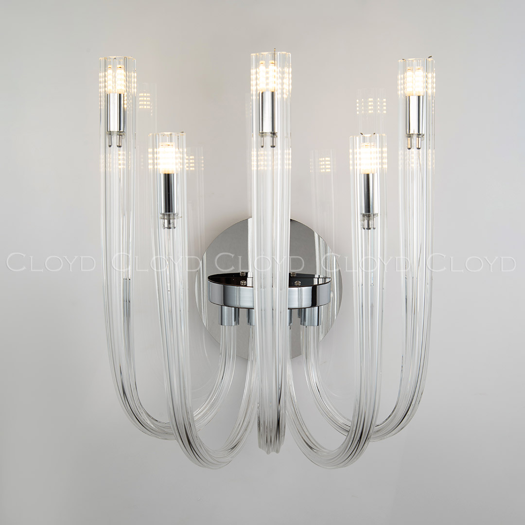 Бра Cloyd AEDA (Клойд Аэда) W5 / арт.20465, ширина: 35 см. высота: 45 см глубина: 26 см, источник света: G9 х 5 шт, цвет металла - хром блестящий. Гарантия: 1 год.