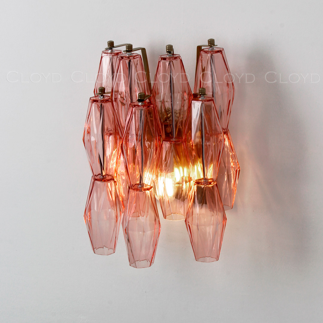 Бра Cloyd CALCUTTA W1 / выс. 37 см - латунь - розов.стекло (арт.20486)