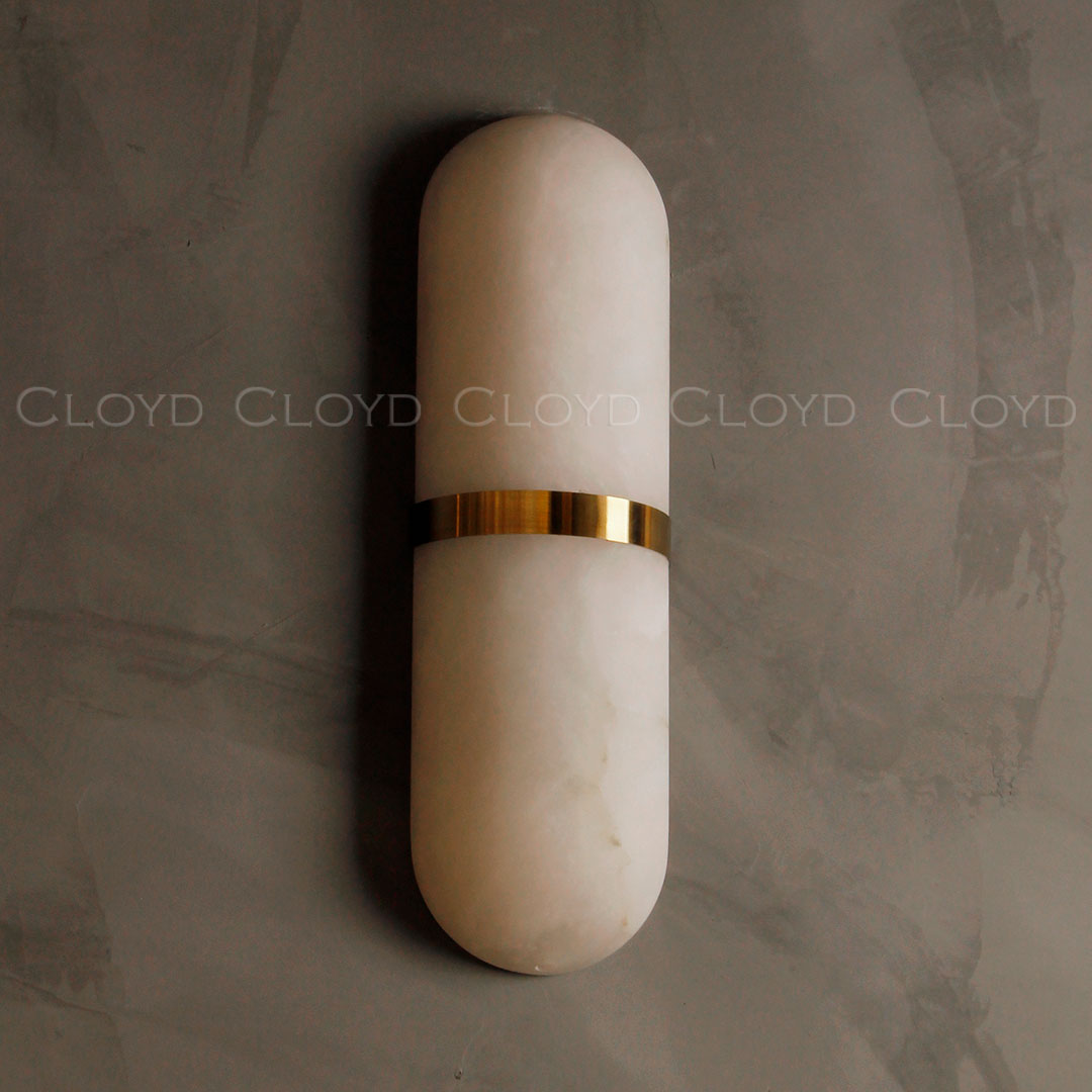 Бра Cloyd DILEMMA (Клойд Дилемма) W1 / арт.20802, ширина: 12 см. высота: 40 см глубина: 6 см, источник света: LED 18 Вт (3000 К, теплый свет), цвет металла - латунь. Особенности: алебастр или Облачный Камень - минерал с повышенной светопроницаемостью.Гарантия: 1 год.