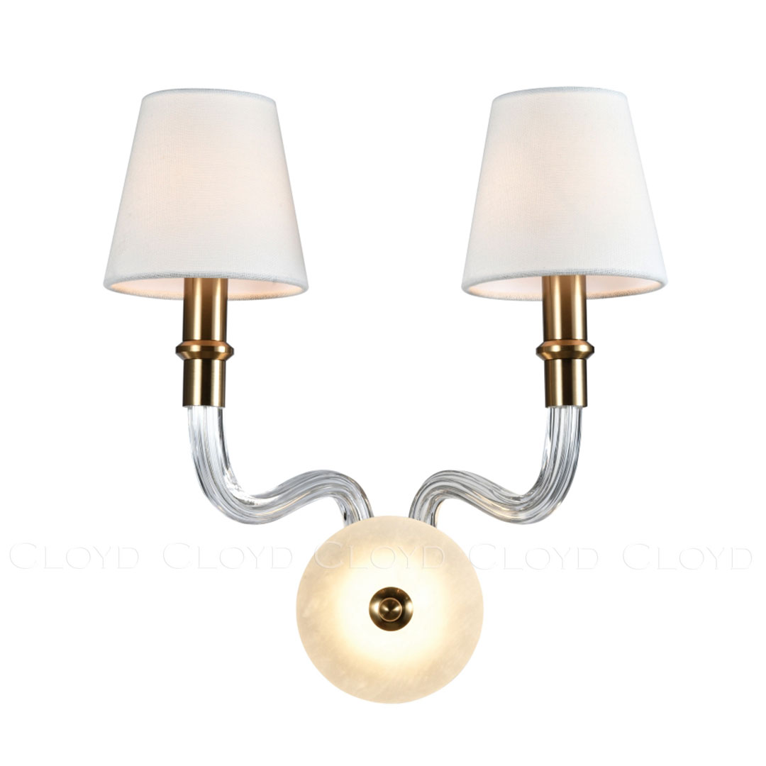 Бра Cloyd SHERINGTON (Клойд Шерингтон) W3 / арт.20357, ширина: 35 см. высота: 38 см глубина: 23 см, источник света: E14 х 2 шт + LED 6 Вт, цвет металла - латунь. Особенности: алебастр или Облачный Камень - минерал с повышенной светопроницаемостью.Гарантия: 1 год.