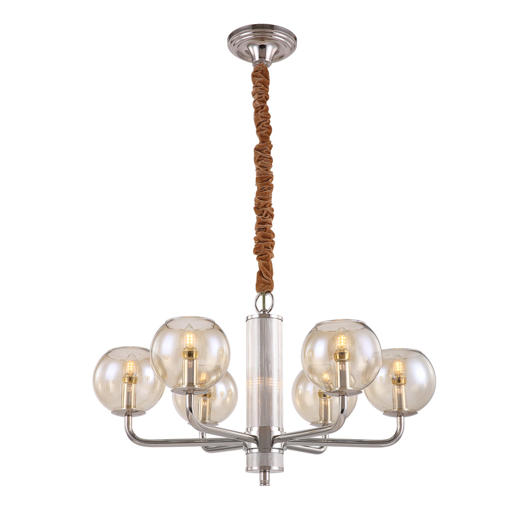 Люстра подвесная Cloyd HARMIN (Клойд Хармин) C6 / арт.10131, ø: 70 см. высота: 41 см (подвес в комплекте - до 50 см), источник света: E14 х 6 шт, цвет металла - никель полированный. Гарантия: 1 год.