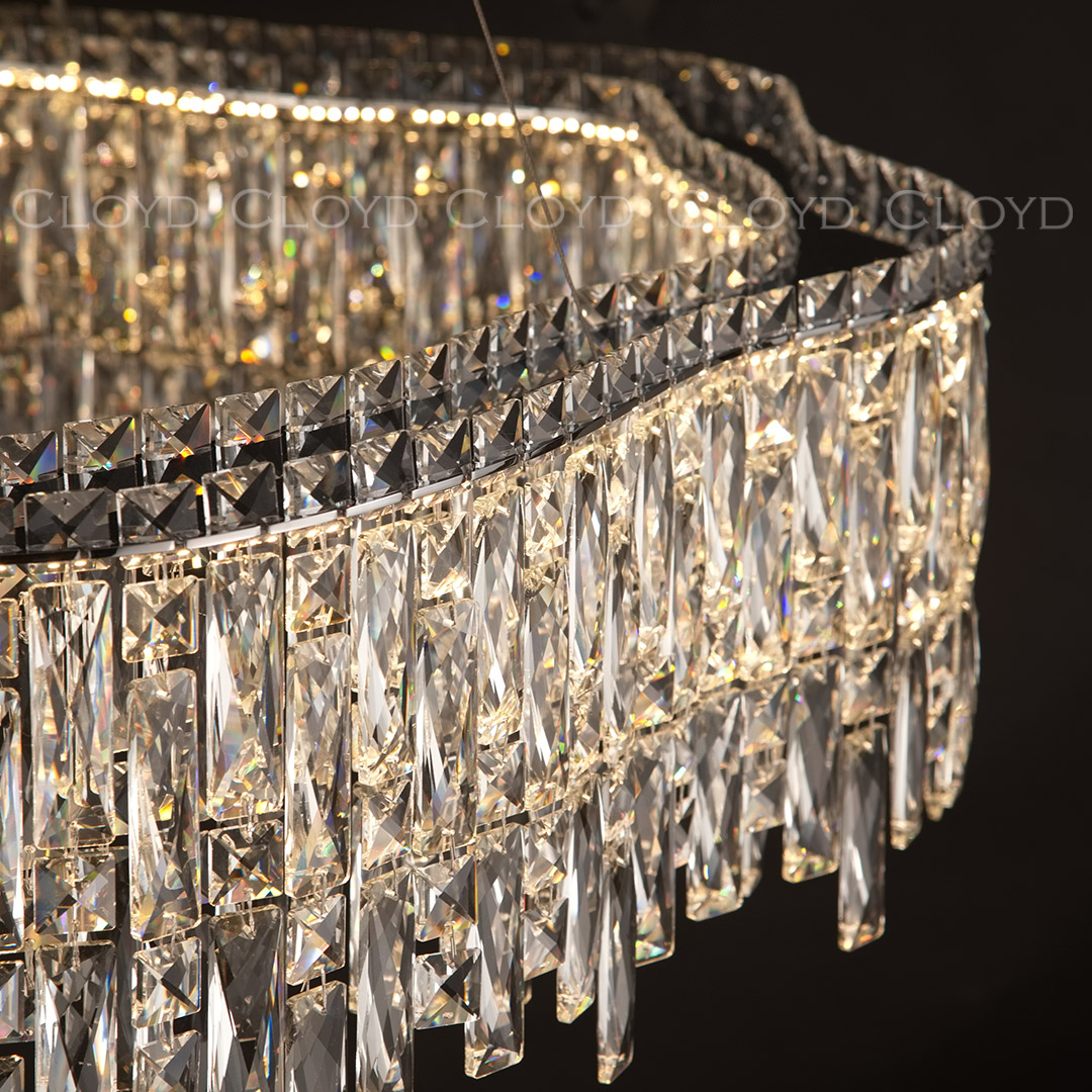 Люстра подвесная Cloyd ANTREA (Клойд Антрея) C1 / арт.11224, ø: 80 см. высота: 25 см (подвес в комплекте - до 100 см), источник света: LED 90 Вт (3000 К, теплый свет), цвет металла - хром блестящий. Особенности: хрусталь К9.Гарантия: 1 год.