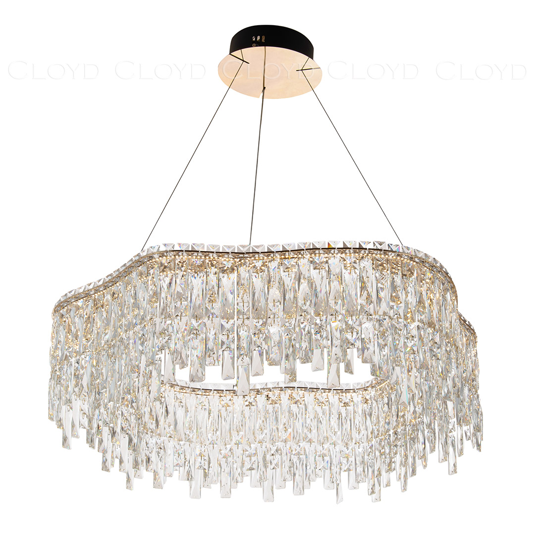 Люстра подвесная Cloyd ANTREA (Клойд Антрея) C1 / арт.11471, ø: 80 см. высота: 25 см, источник света: LED 90 Вт (3000 К, теплый свет), цвет металла - золото блестящее. Особенности: хрусталь К9.Гарантия: 1 год.