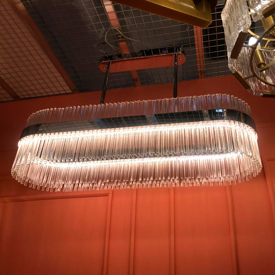 Люстра подвесная Cloyd CADANCE (Клойд Каданс) C1 / арт.10576, ширина: 120 см. высота: 33 - 79 см глубина: 36 см, источник света: LED 100 Вт (3000 К, теплый свет), цвет металла - хром блестящий. Гарантия: 1 год.