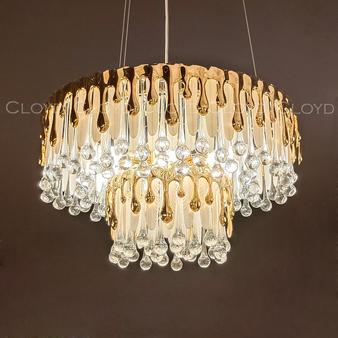 Люстра подвесная Cloyd CAPULETTI (Клойд Капулетти) C12 / арт.11205, ø: 60 см. высота: 30 см (подвес в комплекте - до 100 см), источник света: E14 х 12 шт, цвет металла - золото блестящее. Особенности: керамика высокого качества.Гарантия: 1 год.