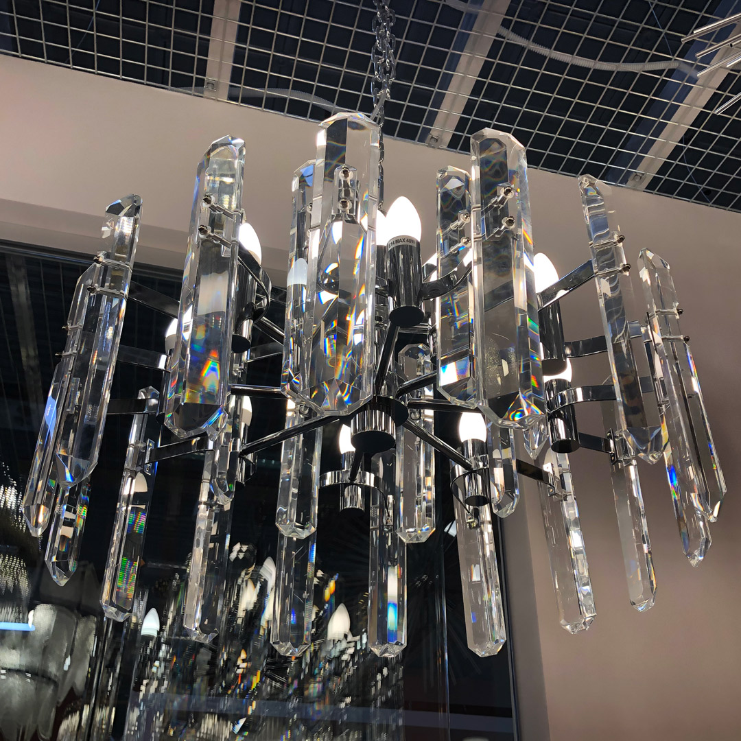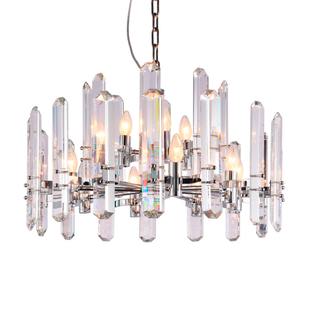 Люстра подвесная Cloyd ESTRADA (Клойд Эстрада) C12 / арт.10274, ø: 65 см. высота: 40 см (подвес в комплекте - до 50 см), источник света: E14 х 12 шт, цвет металла - хром блестящий. Гарантия: 1 год.