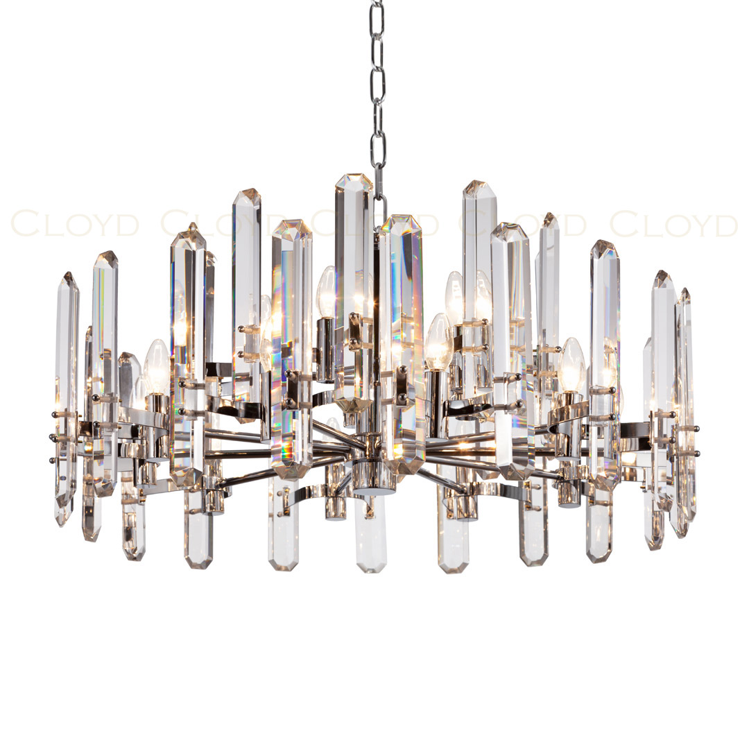 Люстра подвесная Cloyd ESTRADA (Клойд Эстрада) C15 / арт.10275, ø: 85 см. высота: 40 см (подвес в комплекте - до 50 см), источник света: E14 х 15 шт, цвет металла - хром блестящий. Гарантия: 1 год.