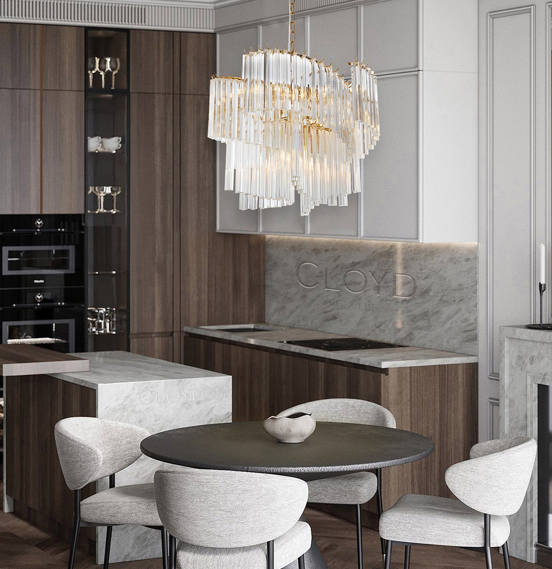 Люстра подвесная Cloyd EVOLUTE (Клойд Эволют) C10 / арт.10304, ø: 60 см. высота: 48 см (подвес в комплекте - до 50 см), источник света: E14 х 10 шт, цвет металла - золото блестящее. Гарантия: 1 год.