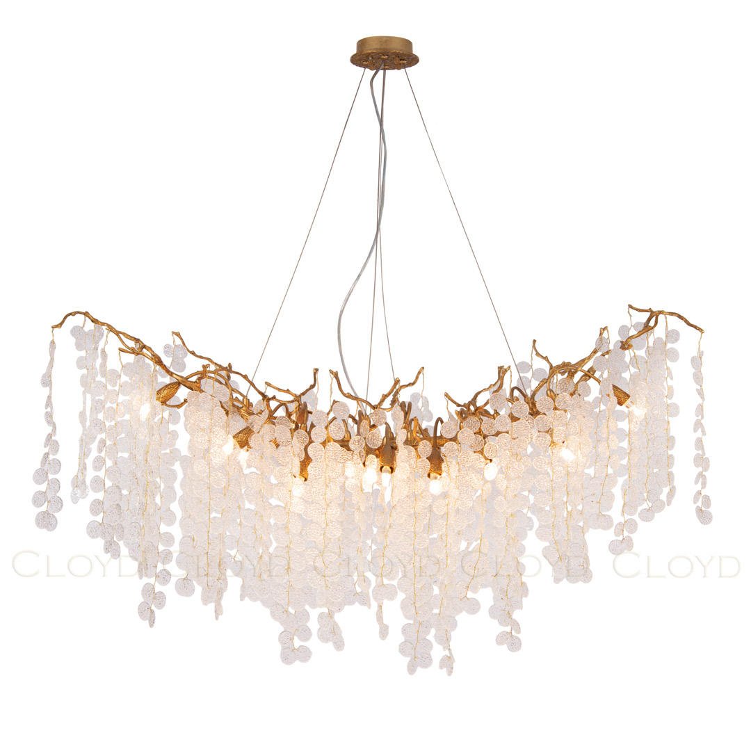 Люстра подвесная Cloyd HAOMA (Клойд Хаома) C18 / арт.10911, ширина: 120 см. высота: 65 см глубина: 70 см, источник света: G9 х 18 шт, цвет металла - латунь. Гарантия: 1 год.