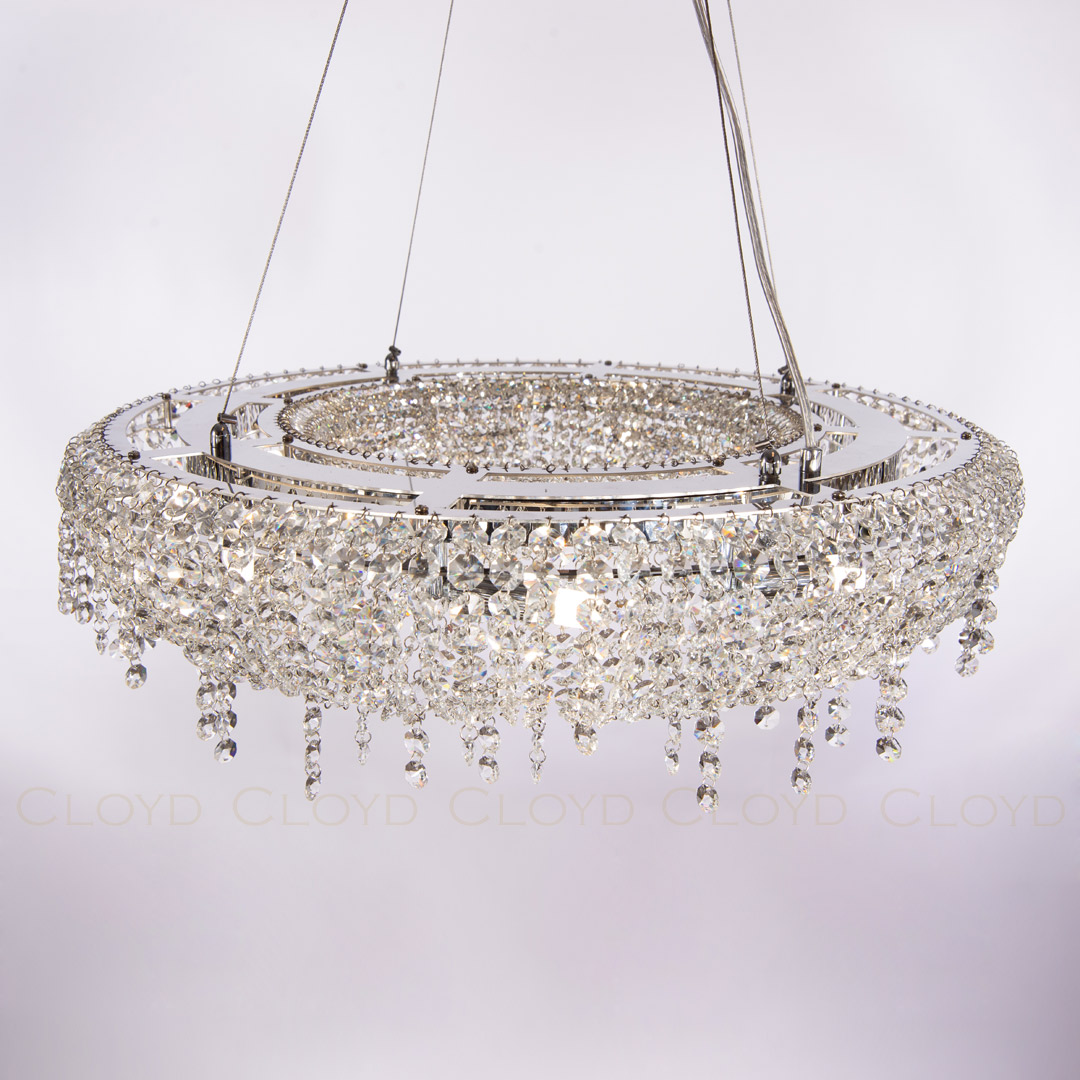 Люстра подвесная Cloyd HAYAO (Клойд Хаяо) C9 / арт.10940, ø: 60 см. высота: 25 см, источник света: G9 х 9 шт, цвет металла - хром блестящий. Особенности: хрусталь К9.Гарантия: 1 год.