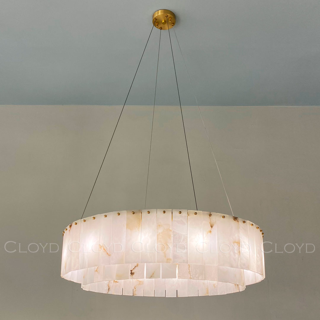 Люстра подвесная Cloyd HERCULANUM (Клойд Геркуланум) C12 / арт.11156, ø: 80 см. высота: 22 см, источник света: G9 х 12 шт, цвет металла - латунь. Особенности: алебастр или Облачный Камень - минерал с повышенной светопроницаемостью.Гарантия: 1 год.