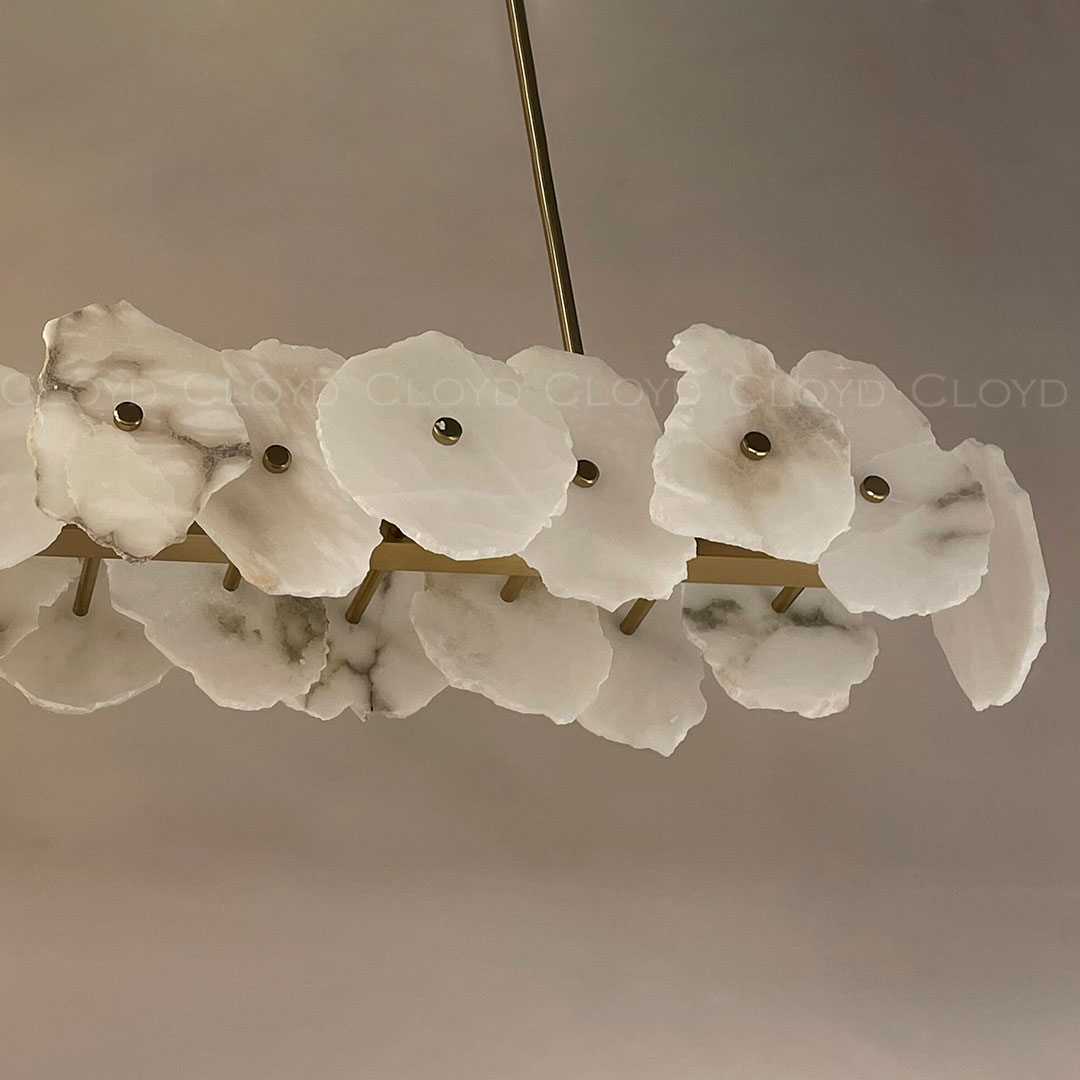 Люстра подвесная Cloyd KNOSS (Клойд Кносс) C1 / арт.10755, ширина: 120 см. высота: 22 см (подвес в комплекте - до 150 см) глубина: 28 см, источник света: LED 100 Вт, цвет металла - латунь. Поскольку цветность и фактура алебастра, используемого в этой коллекции, являются природными характеристиками, размеры и рисунок этих элементов могут отличаться. Особенности: алебастр или Облачный Камень - минерал с повышенной светопроницаемостью.Гарантия: 1 год.