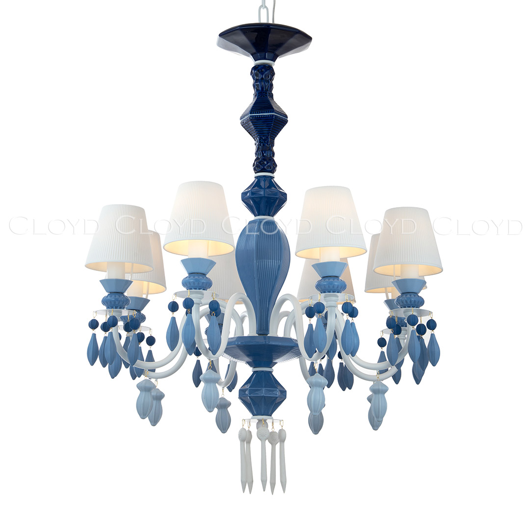 Люстра подвесная Cloyd LOTTIE (Клойд Лотти) C8 / арт.11455, ø: 68 см. высота: 75 см (подвес в комплекте - до 50 см), источник света: E14 х 8 шт, цвет металла - белый (окраска). Особенности: керамика высокого качества, керамические абажуры.Гарантия: 1 год.