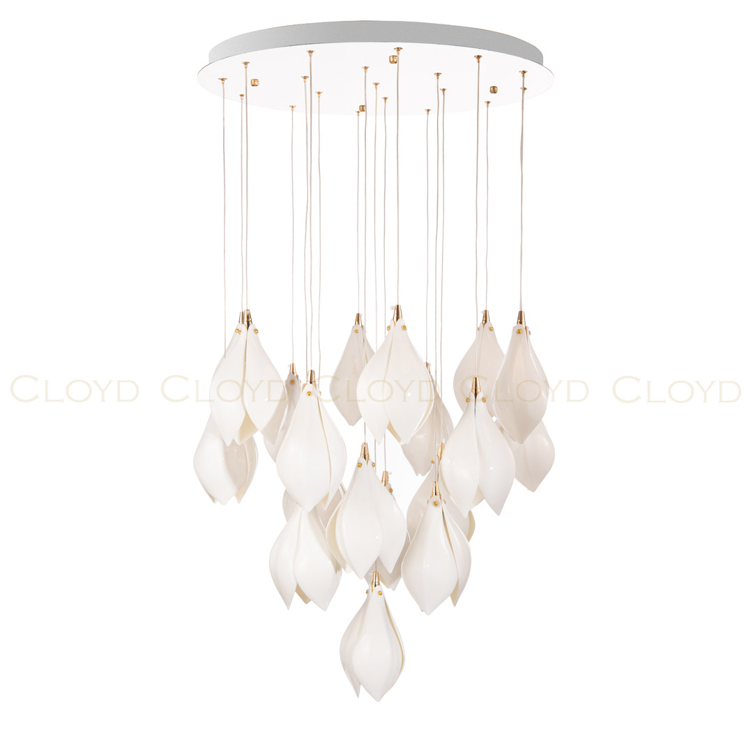 Люстра подвесная Cloyd MANGRA (Клойд Мангра) C19 / арт.10362, ø: 60 см. высота: 110 см, источник света: E14 х 19 шт, цвет металла - белый (окраска). Фурнитура - золото. Особенности: керамика высокого качества.Гарантия: 1 год.