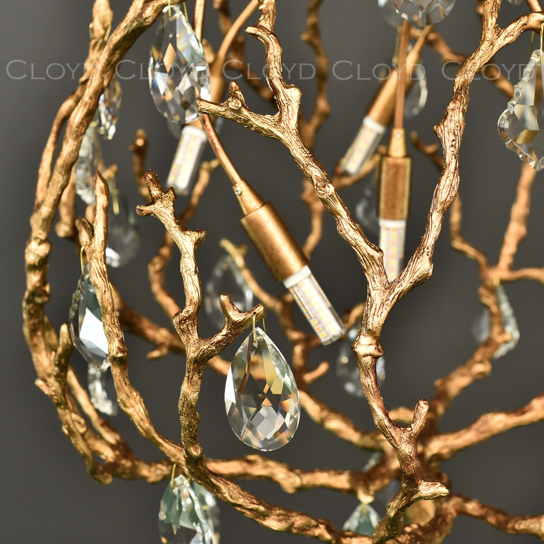 Люстра подвесная Cloyd OCCULT (Клойд Оккульт) C6 / арт.11103, ø: 40 см. высота: 50 см (подвес в комплекте - до 100 см), источник света: G9 х 6 шт, цвет металла - латунь. Особенности: хрусталь К9.Гарантия: 1 год.