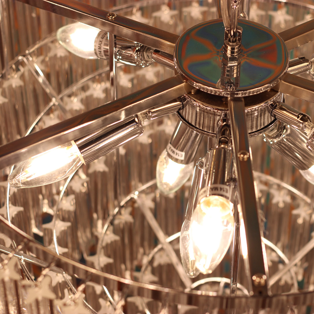 Люстра подвесная Cloyd ORATORIA (Клойд Оратория) C9 / арт.10505, ø: 62 см. высота: 48 см (подвес в комплекте - до 50 см), источник света: E14 х 9 шт, цвет металла - хром блестящий. Гарантия: 1 год.