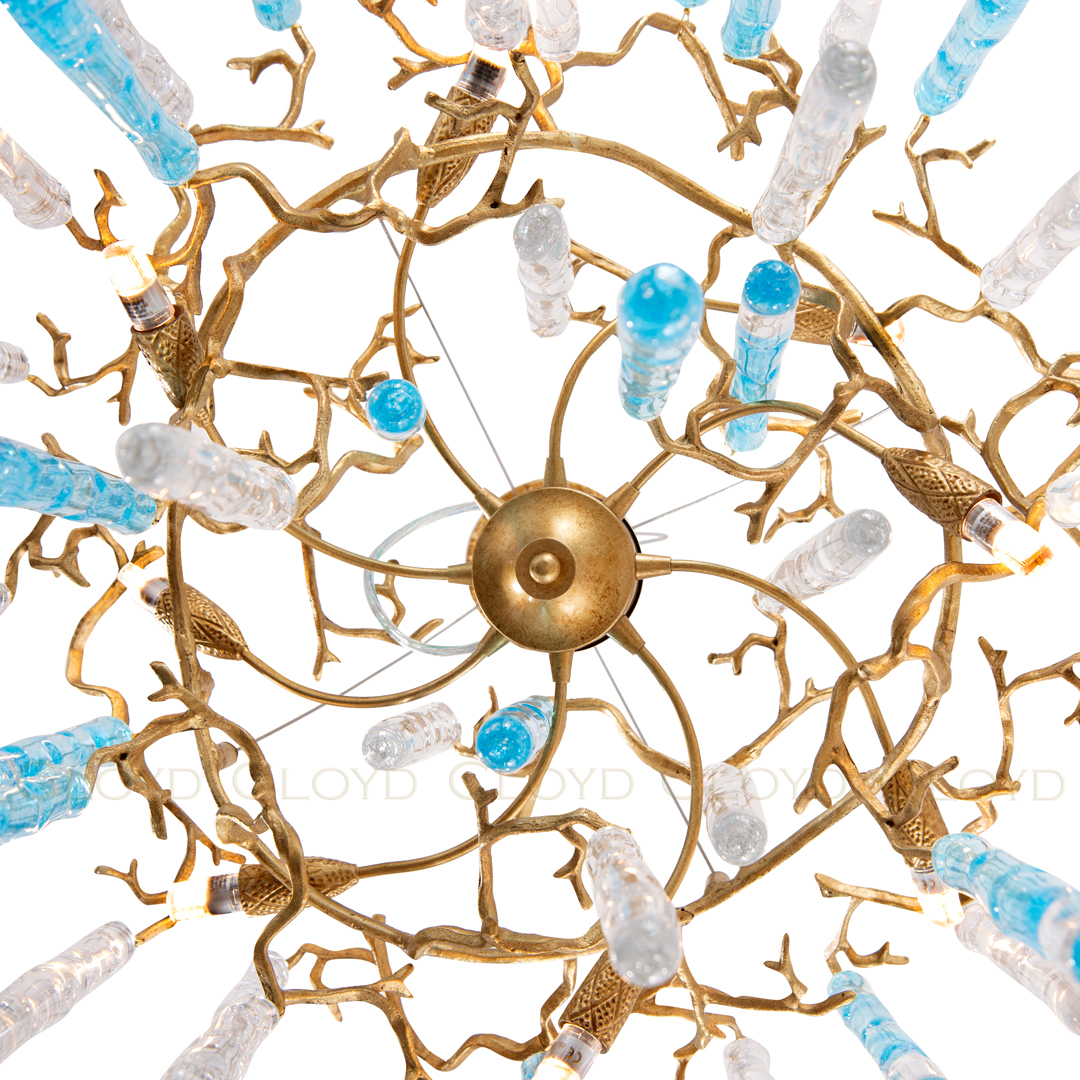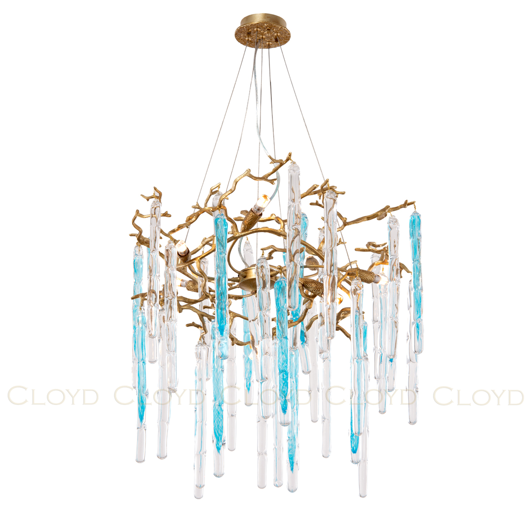 Люстра подвесная Cloyd PANGEA (Клойд Пангея) C8 / арт.10404, ø: 63 см. высота: 70 см, источник света: G9 х 8 шт, цвет металла - латунь. Особенности: выдувное (муранское) стекло.Гарантия: 1 год.