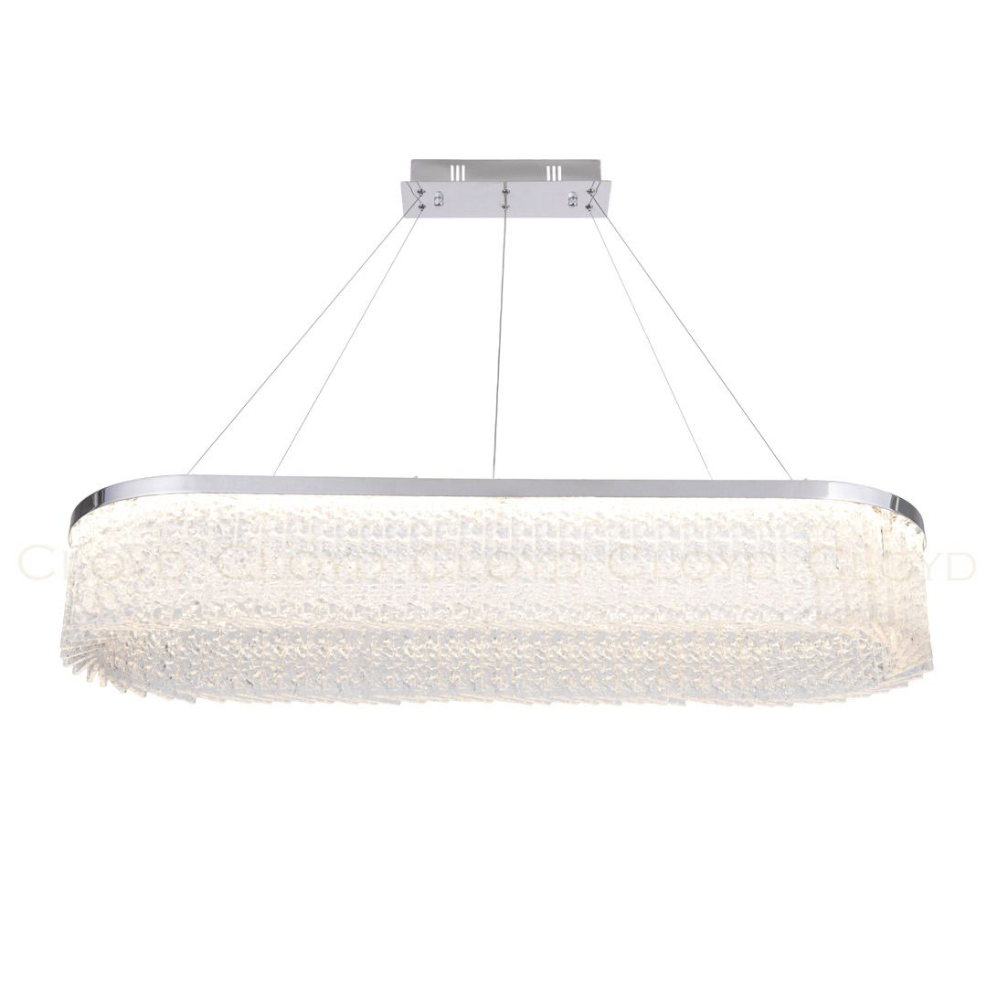 Люстра подвесная Cloyd PERGAM (Клойд Пергам) C1 / арт.10716, ширина: 110 см. высота: 21 см глубина: 36 см, источник света: LED 82 Вт (3000 К, теплый свет), цвет металла - хром блестящий. Гарантия: 1 год.