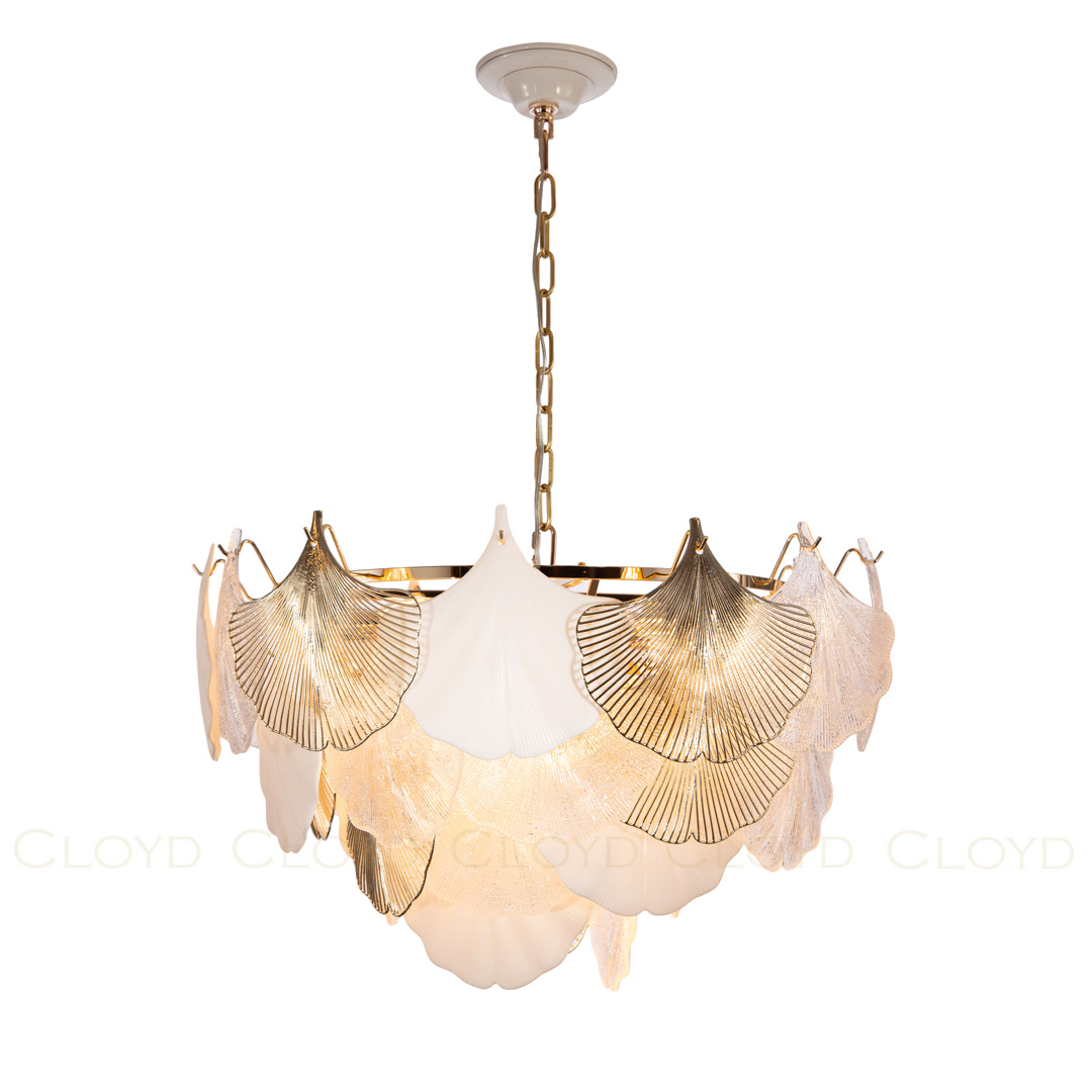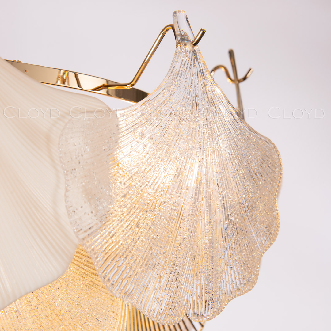 Люстра подвесная Cloyd POLYNESIA (Клойд Полинезия) C14 / арт.10966, ø: 65 см. высота: 40 см (подвес в комплекте - до 50 см), источник света: E14 х 14 шт, цвет металла - золото блестящее. Особенности: керамика высокого качества.Гарантия: 1 год.