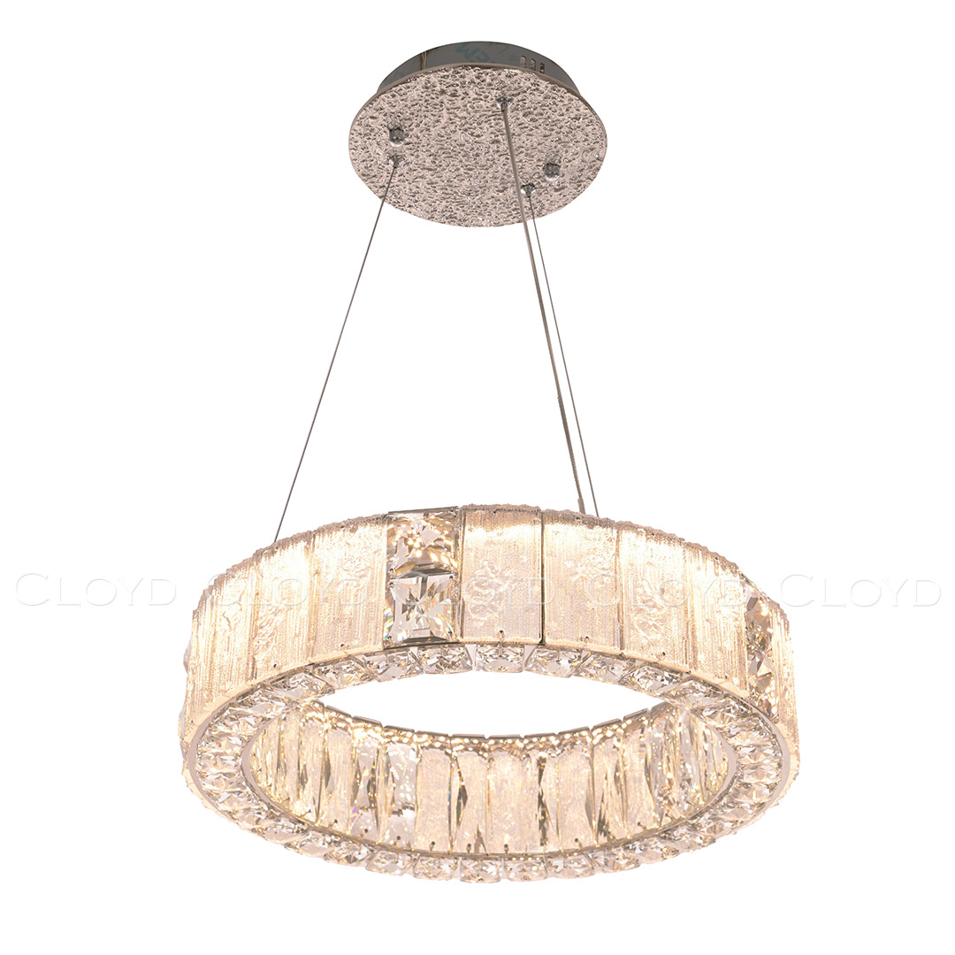 Люстра подвесная Cloyd RADIANTA (Клойд Радианта) C1 / арт.11257, ø: 46 см. высота: 11 см, источник света: LED 50 Вт (3000 К, теплый свет), цвет металла - никель полированный. Особенности: хрусталь К9.Гарантия: 1 год.