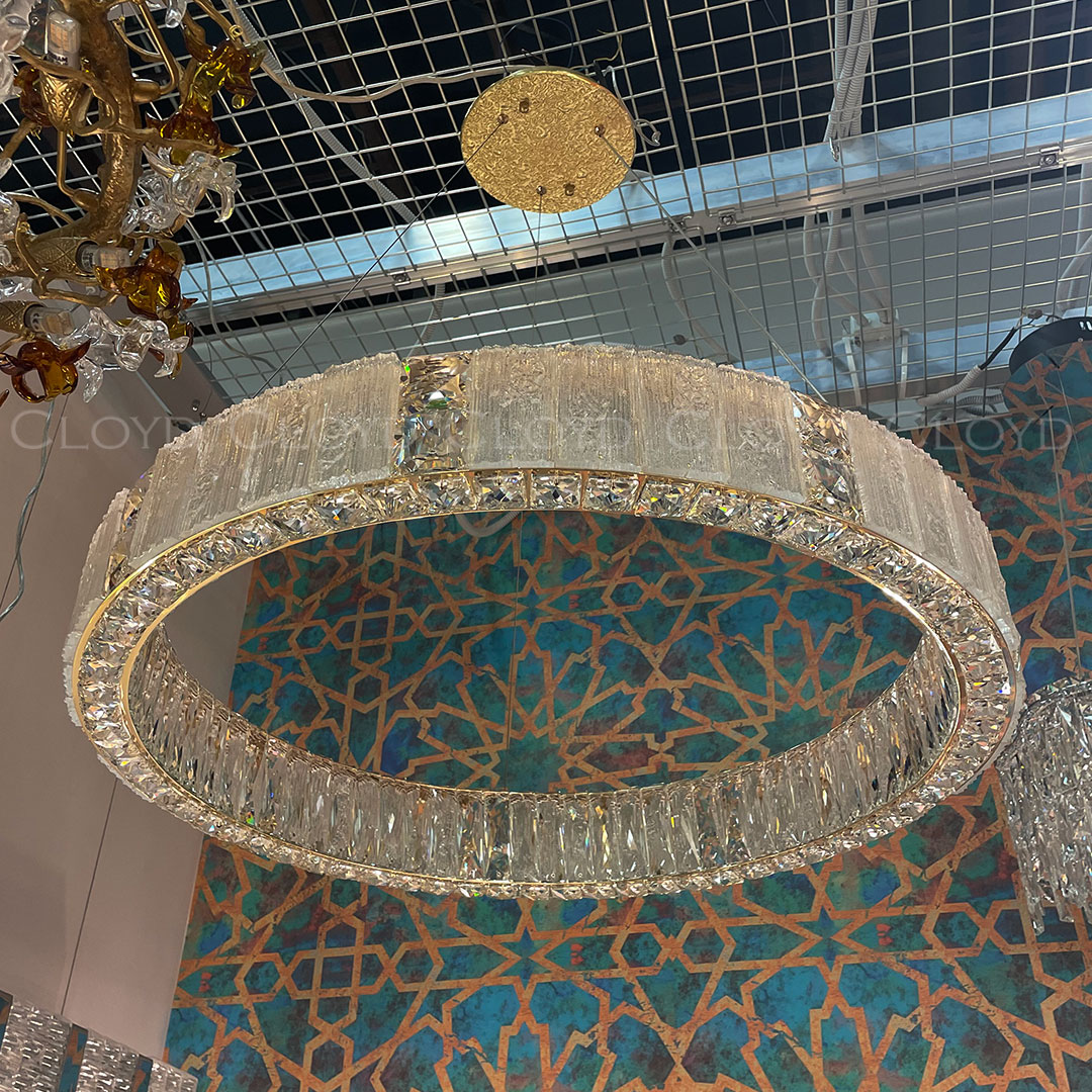 Люстра подвесная Cloyd RADIANTA (Клойд Радианта) C1 / арт.11232, ø: 80 см. высота: 11 см, источник света: LED 100 Вт (3000 К, теплый свет), цвет металла - золото блестящее. Особенности: хрусталь К9.Гарантия: 1 год.