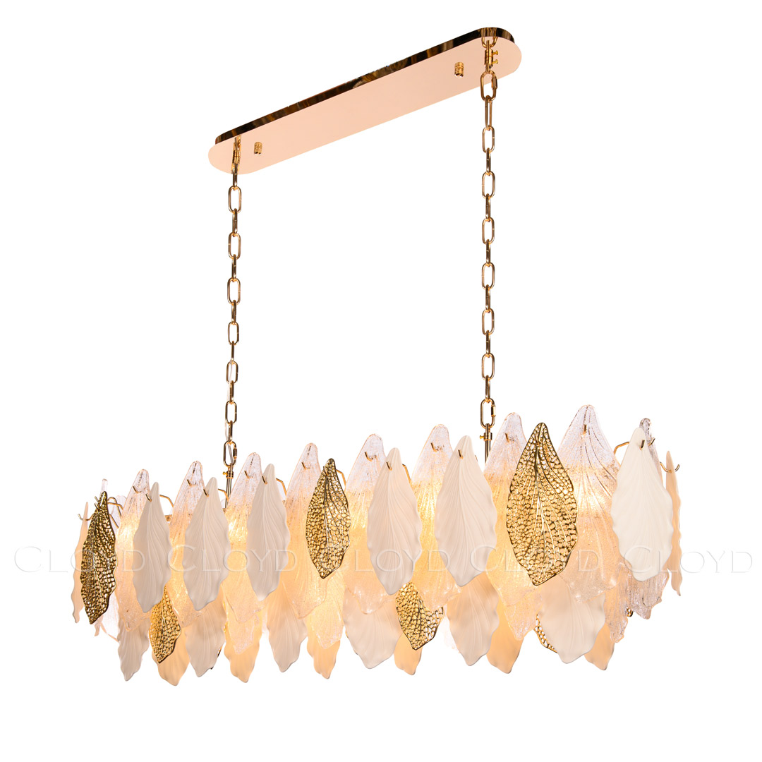 Люстра подвесная Cloyd SENEGAL (Клойд Сенегал) C14 / арт.11178, ширина: 105 см. высота: 38 см (подвес в комплекте - до 50 см) глубина: 30 см, источник света: E14 х 14 шт, цвет металла - золото блестящее. Особенности: керамика высокого качества.Гарантия: 1 год.