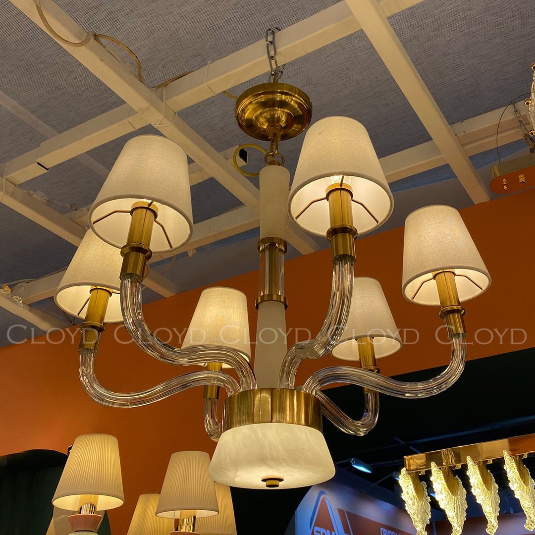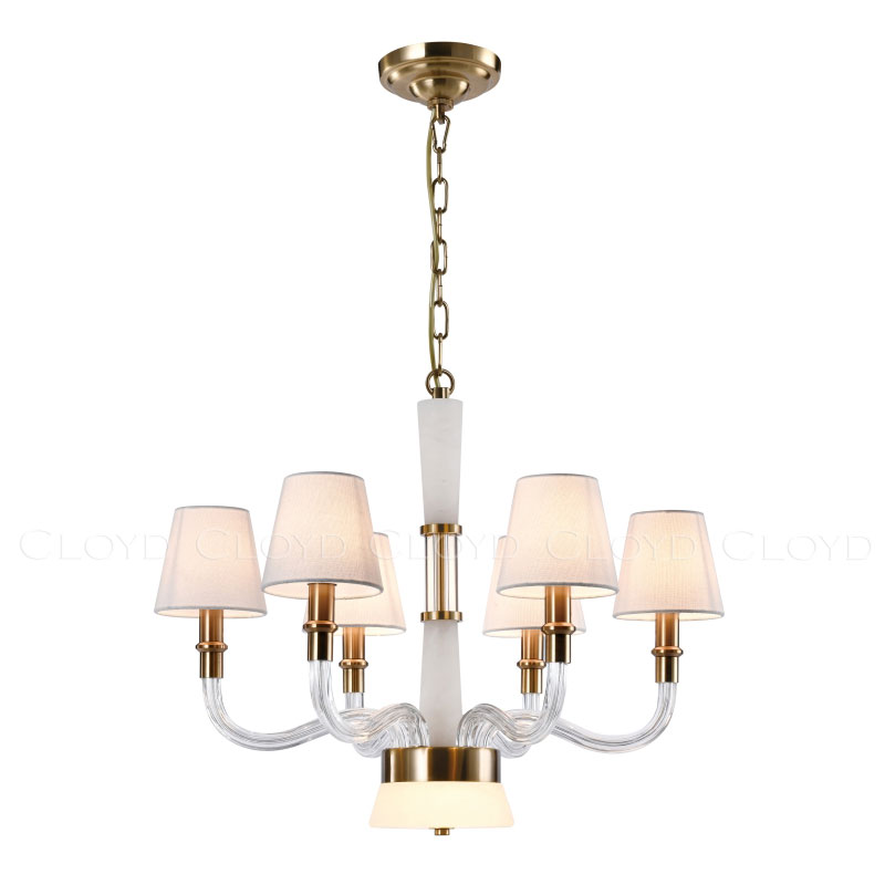 Люстра подвесная Cloyd SHERINGTON (Клойд Шерингтон) C7 / арт.11310, ø: 67 см. высота: 55 см (подвес в комплекте - до 60 см), источник света: E14 х 6 шт + LED 7 Вт, цвет металла - латунь. Особенности: алебастр или Облачный Камень - минерал с повышенной светопроницаемостью.Гарантия: 1 год.