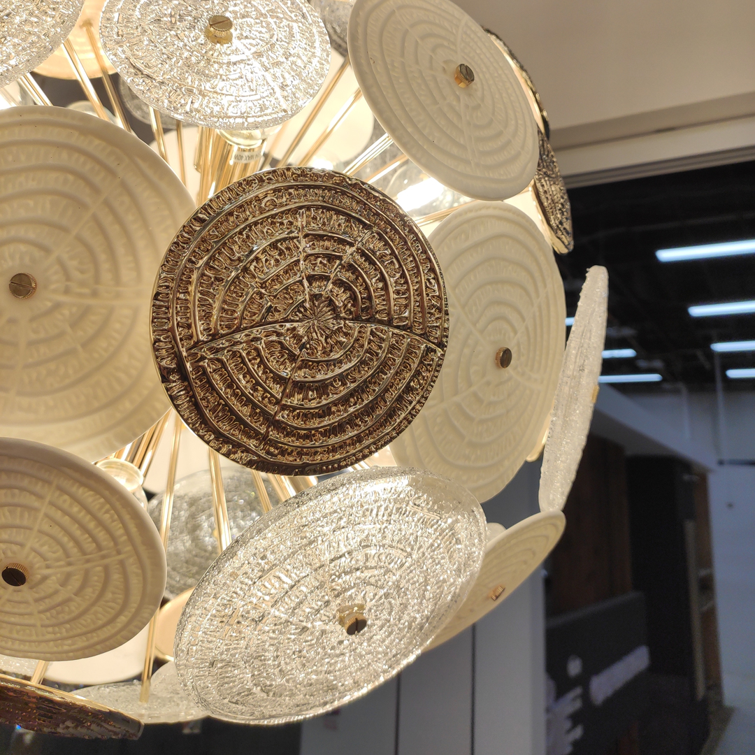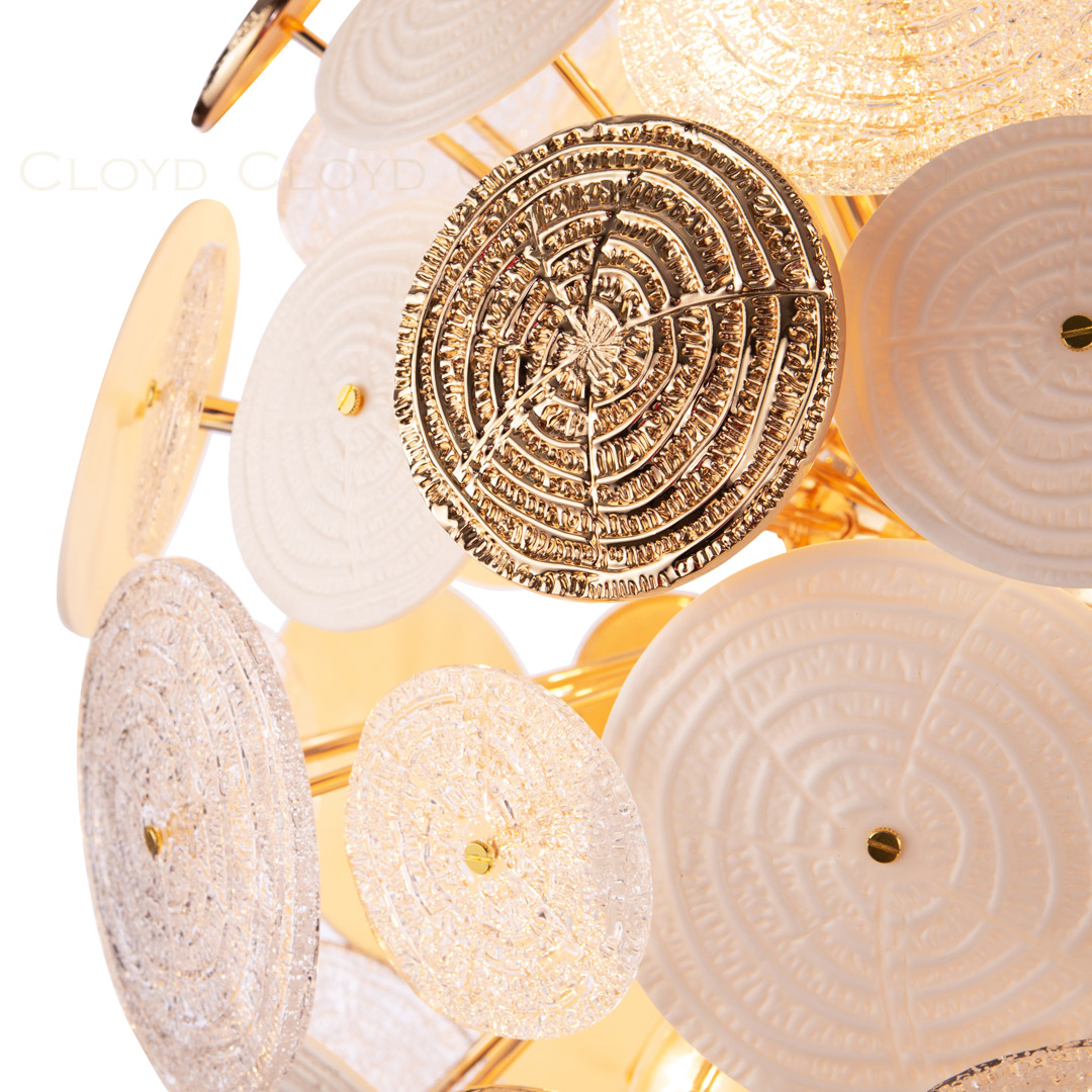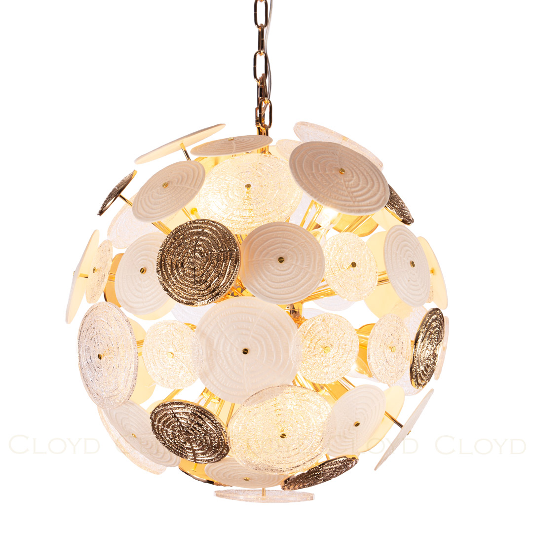 Люстра подвесная Cloyd SOLAR (Клойд Солар) C12 / арт.10660, ø: 50 см. высота: 50 см (подвес в комплекте - до 70 см), источник света: E14 х 12 шт, цвет металла - золото блестящее. Особенности: керамика высокого качества.Гарантия: 1 год.