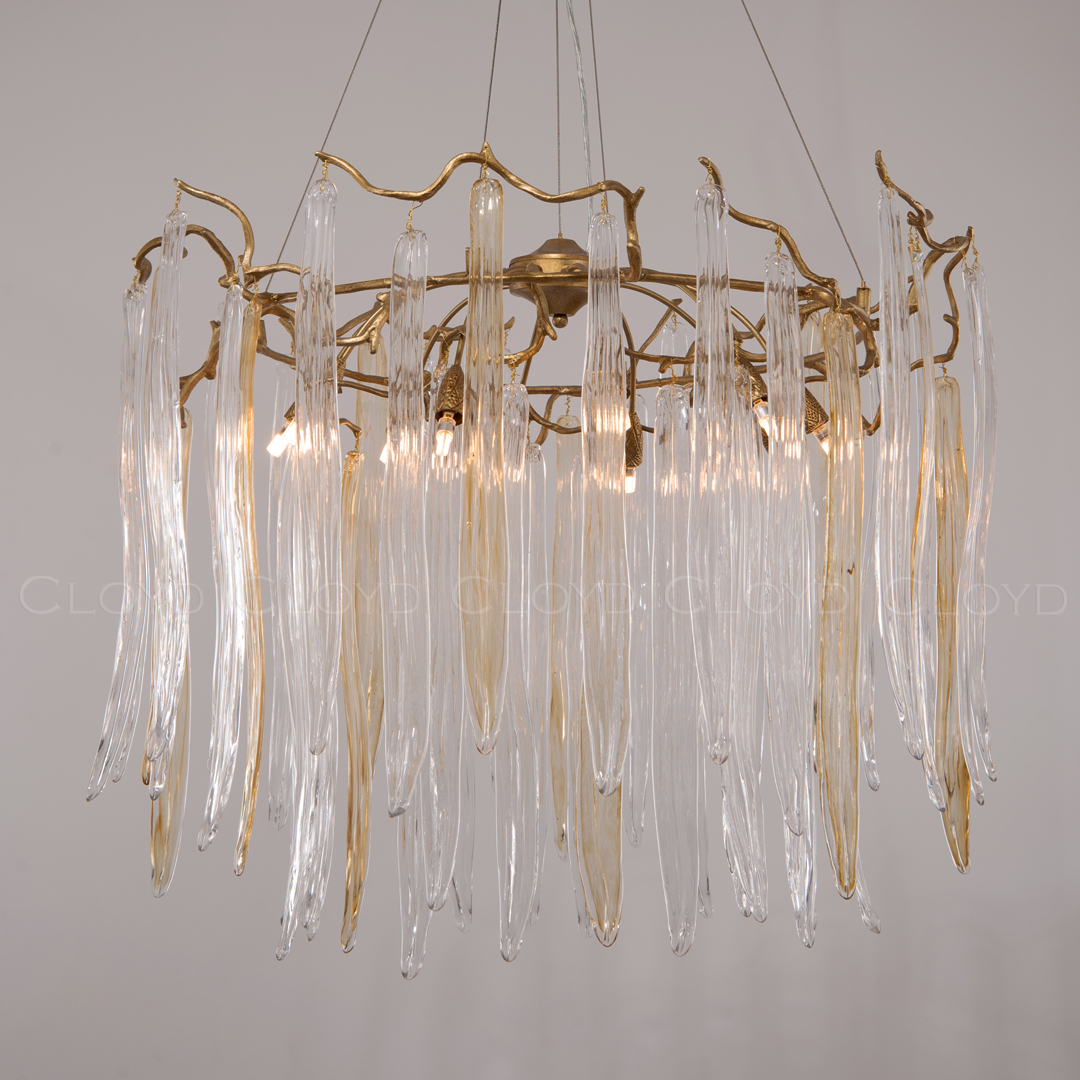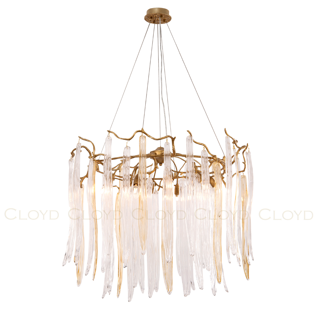 Люстра подвесная Cloyd SULAWESI (Клойд Сулавеси) C10 / арт.10400, ø: 83 см. высота: 65 см, источник света: G9 х 10 шт, цвет металла - латунь. Особенности: выдувное (муранское) стекло.Гарантия: 1 год.