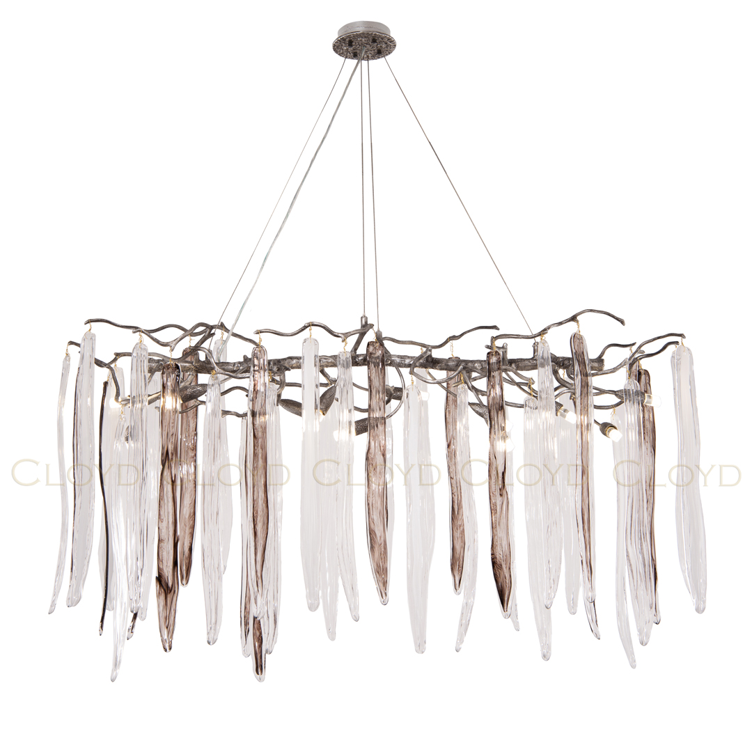 Люстра подвесная Cloyd SULAWESI (Клойд Сулавеси) C12 / арт.10406, ширина: 122 см. высота: 60 см глубина: 42 см, источник света: G9 х 12 шт, цвет металла - серебро темное. Особенности: выдувное (муранское) стекло.Гарантия: 1 год.