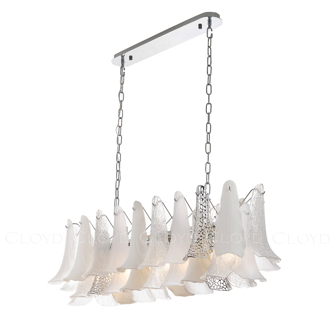 Люстра подвесная Cloyd WASABI (Клойд Васаби) C8 / арт.11451, ширина: 111 см. высота: 34 см (подвес в комплекте - до 60 см) глубина: 38 см, источник света: E14 х 8 шт, цвет металла - хром блестящий. Особенности: керамика высокого качества.Гарантия: 1 год.