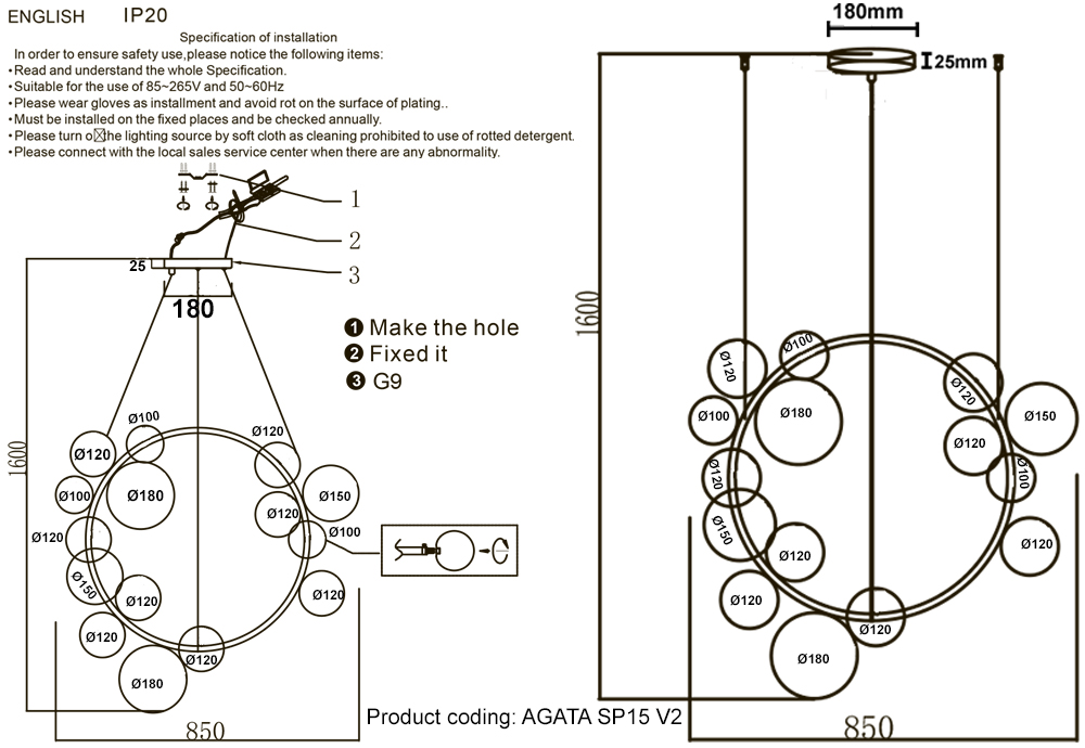 Люстра Crystal Lux AGATA SP15 V2 BLACK/TRANSPARENTE