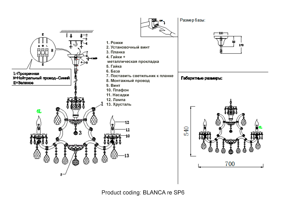Люстра Crystal Lux BLANCA re SP6