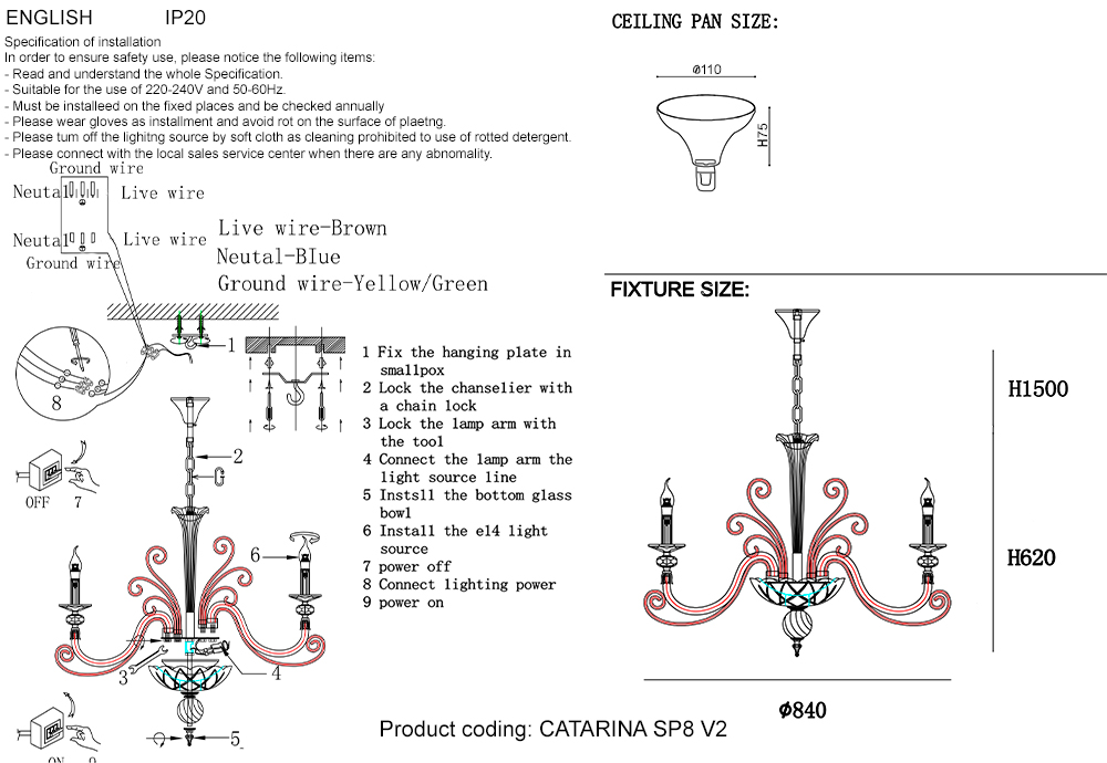 Люстра Crystal Lux CATARINA SP8 V2 GOLD/TRANSPARENT-COGNAC