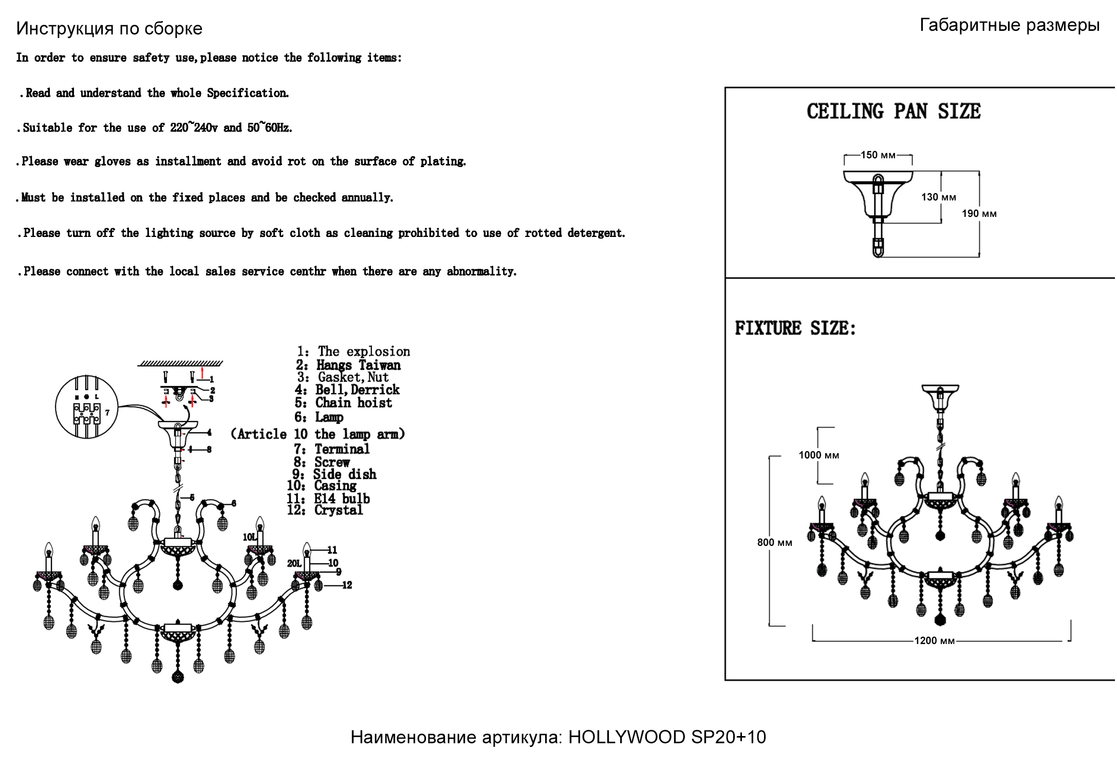 Люстра Crystal Lux HOLLYWOOD SP20+10 GOLD