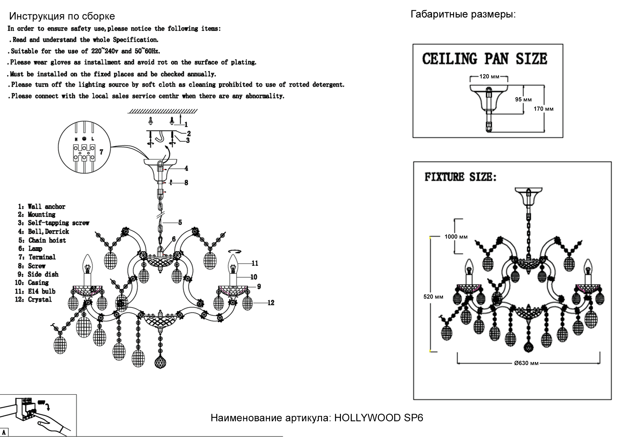 Люстра Crystal Lux HOLLYWOOD SP6 CHROME