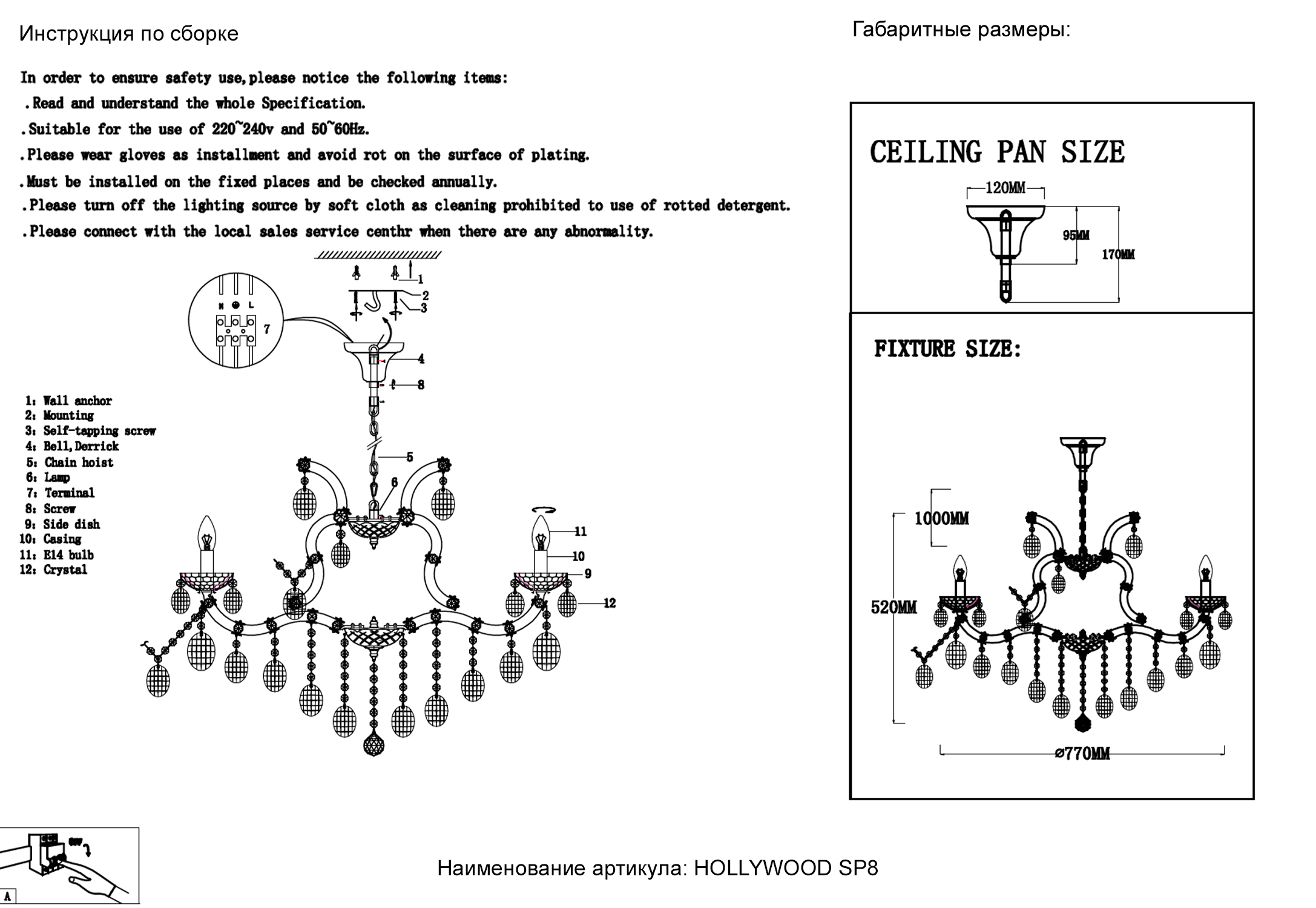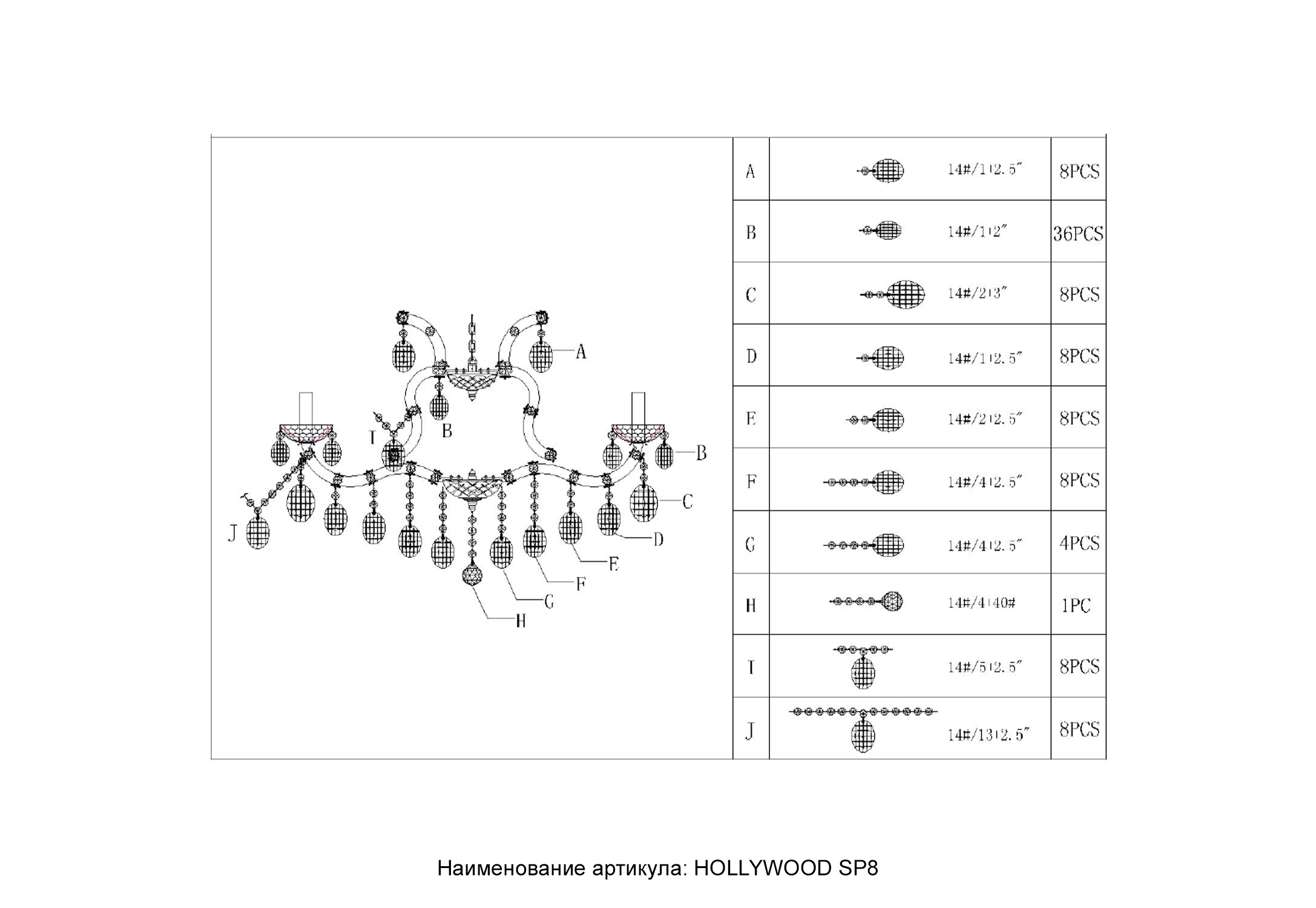 Люстра Crystal Lux HOLLYWOOD SP8 GOLD