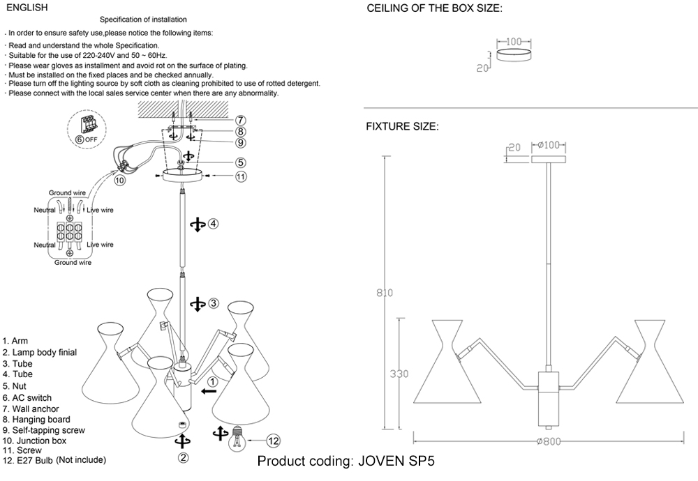 Люстра Crystal Lux JOVEN SP5 GOLD/BLACK